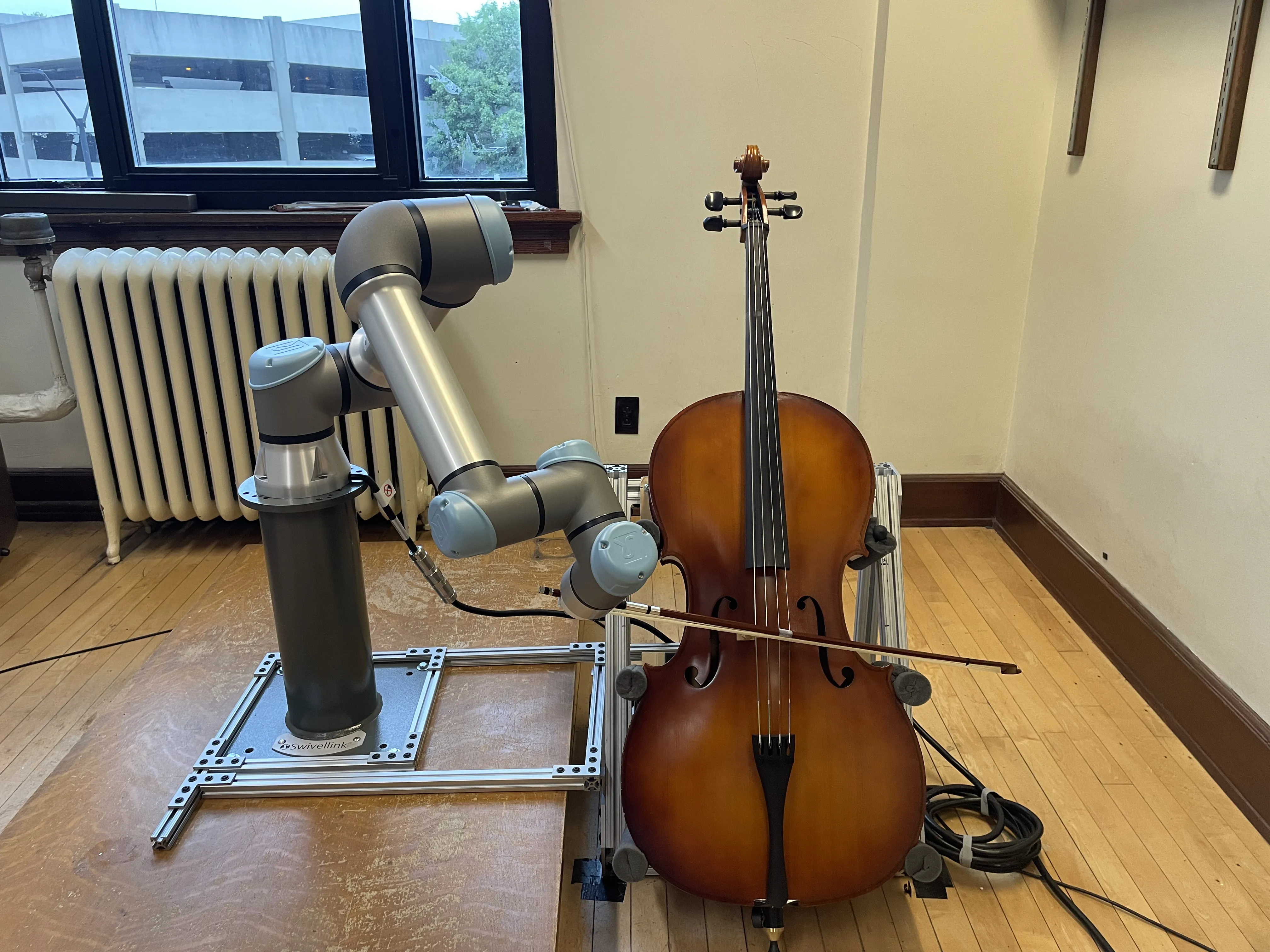 Robot musicians require precise control to obtain proper note accuracy, sound quality, and musical expression. Performance of string instruments, such as violin and cello, presents a significant challenge due to the precise control required over bow angle and pressure to produce the desired sound. While prior robotic cellists focus on accurate bowing trajectories, these works often rely on expensive motion capture techniques, and fail to sightread music in a human-like way. We propose a novel end-to-end MIDI score to robotic motion pipeline which converts musical input directly into collision-aware bowing motions for a UR5e robot cellist. Through use of Universal Robot Freedrive feature, our robotic musician can achieve human-like sound without the need for motion capture. Additionally, this work records live joint data via Real-Time Data Exchange (RTDE) as the robot plays, providing labeled robotic playing data from a collection of five standard pieces to the research community. To demonstrate the effectiveness of our method in comparison to human performers, we introduce the Musical Turing Test, in which a collection of 132 human participants evaluate our robot's performance against a human baseline. Human reference recordings are also released, enabling direct comparison for future studies. This evaluation technique establishes the first benchmark for robotic cello performance. Finally, we outline a residual reinforcement learning methodology to improve upon baseline robotic controls, highlighting future opportunities for improved string-crossing efficiency and sound quality.