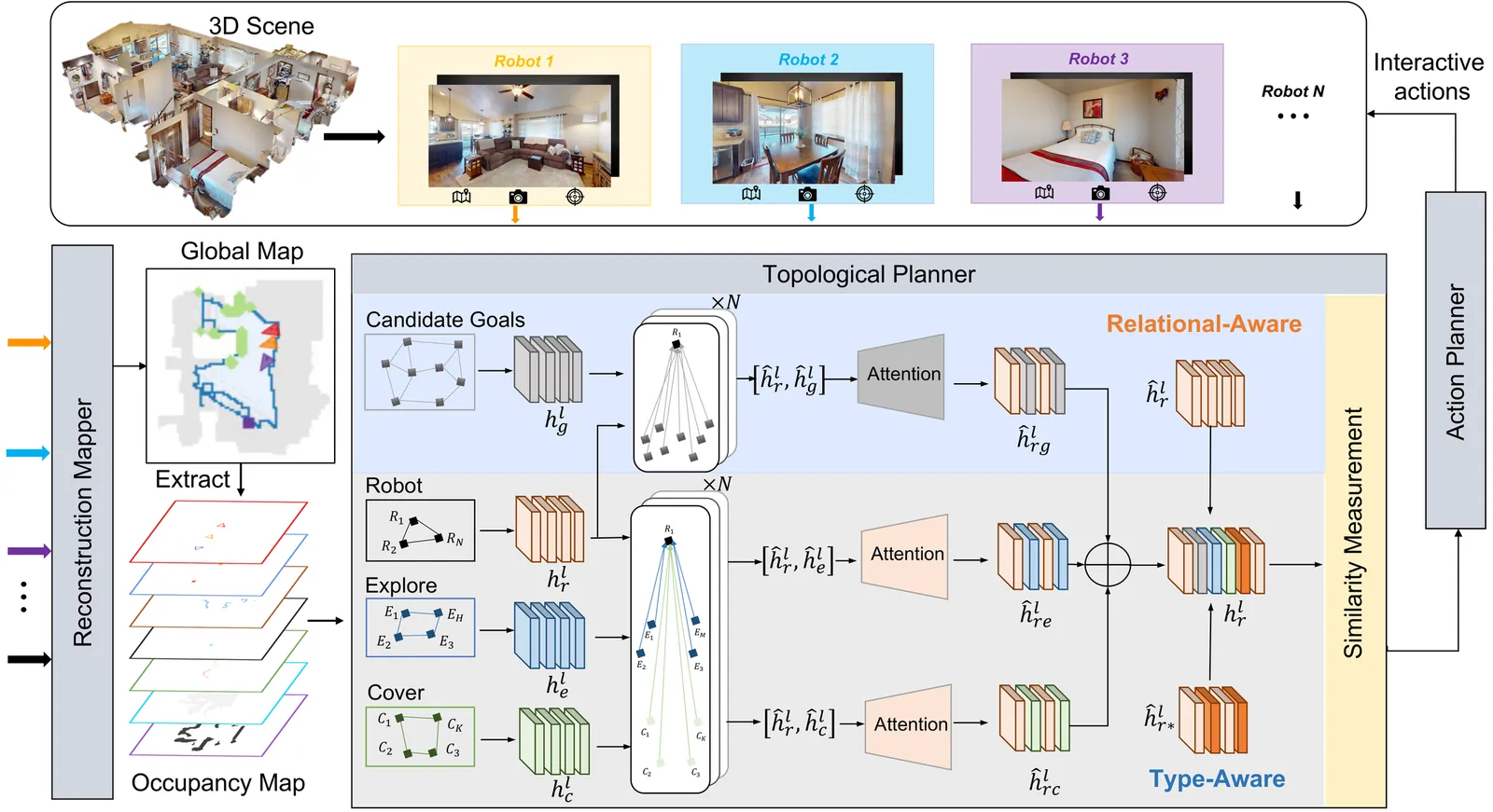In multi-robot collaborative area search, a key challenge is to dynamically balance the two objectives of exploring unknown areas and covering specific targets to be rescued. Existing methods are often constrained by homogeneous graph representations, thus failing to model and balance these distinct tasks. To address this problem, we propose a Dual-Attention Heterogeneous Graph Neural Network (DA-HGNN) trained using deep reinforcement learning. Our method constructs a heterogeneous graph that incorporates three entity types: robot nodes, frontier nodes, and interesting nodes, as well as their historical states. The dual-attention mechanism comprises the relational-aware attention and type-aware attention operations. The relational-aware attention captures the complex spatio-temporal relationships among robots and candidate goals. Building on this relational-aware heterogeneous graph, the type-aware attention separately computes the relevance between robots and each goal type (frontiers vs. points of interest), thereby decoupling the exploration and coverage from the unified tasks. Extensive experiments conducted in interactive 3D scenarios within the iGibson simulator, leveraging the Gibson and MatterPort3D datasets, validate the superior scalability and generalization capability of the proposed approach.