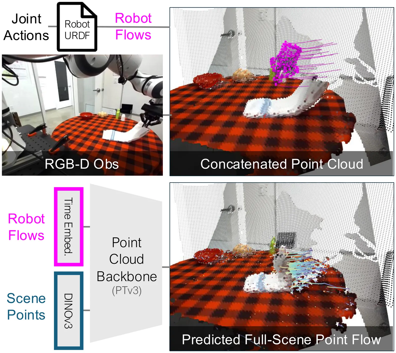 Humans anticipate, from a glance and a contemplated action of their bodies, how the 3D world will respond, a capability that is equally vital for robotic manipulation. We introduce PointWorld, a large pre-trained 3D world model that unifies state and action in a shared 3D space as 3D point flows: given one or few RGB-D images and a sequence of low-level robot action commands, PointWorld forecasts per-pixel displacements in 3D that respond to the given actions. By representing actions as 3D point flows instead of embodiment-specific action spaces (e.g., joint positions), this formulation directly conditions on physical geometries of robots while seamlessly integrating learning across embodiments. To train our 3D world model, we curate a large-scale dataset spanning real and simulated robotic manipulation in open-world environments, enabled by recent advances in 3D vision and simulated environments, totaling about 2M trajectories and 500 hours across a single-arm Franka and a bimanual humanoid. Through rigorous, large-scale empirical studies of backbones, action representations, learning objectives, partial observability, data mixtures, domain transfers, and scaling, we distill design principles for large-scale 3D world modeling. With a real-time (0.1s) inference speed, PointWorld can be efficiently integrated in the model-predictive control (MPC) framework for manipulation. We demonstrate that a single pre-trained checkpoint enables a real-world Franka robot to perform rigid-body pushing, deformable and articulated object manipulation, and tool use, without requiring any demonstrations or post-training and all from a single image captured in-the-wild. Project website at https://point-world.github.io/.