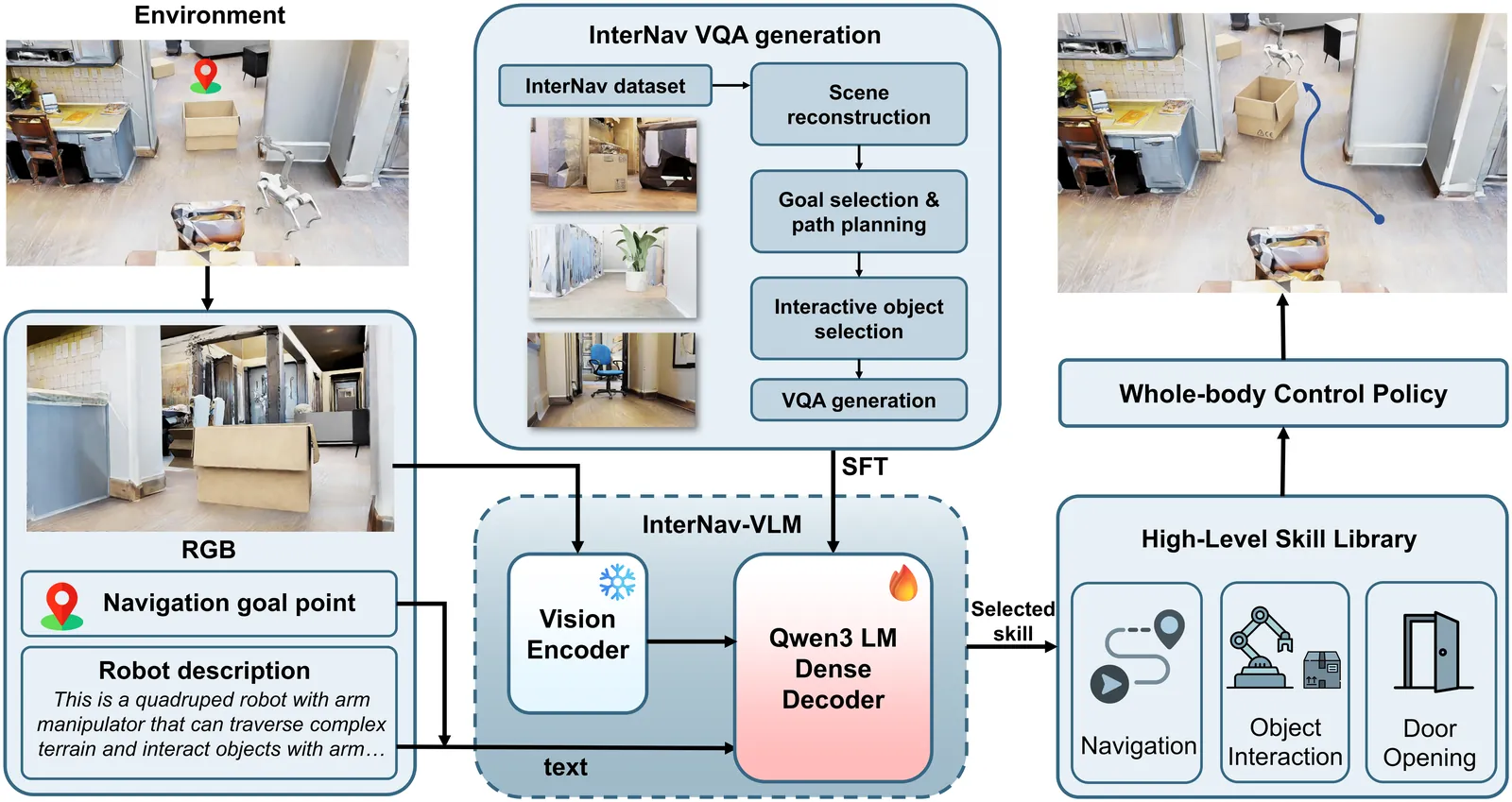 Recent Vision-Language Models (VLMs) have demonstrated significant potential in robotic planning. However, they typically function as semantic reasoners, lacking an intrinsic understanding of the specific robot's physical capabilities. This limitation is particularly critical in interactive navigation, where robots must actively modify cluttered environments to create traversable paths. Existing VLM-based navigators are predominantly confined to passive obstacle avoidance, failing to reason about when and how to interact with objects to clear blocked paths. To bridge this gap, we propose Counterfactual Interactive Navigation via Skill-aware VLM (CoINS), a hierarchical framework that integrates skill-aware reasoning and robust low-level execution. Specifically, we fine-tune a VLM, named InterNav-VLM, which incorporates skill affordance and concrete constraint parameters into the input context and grounds them into a metric-scale environmental representation. By internalizing the logic of counterfactual reasoning through fine-tuning on the proposed InterNav dataset, the model learns to implicitly evaluate the causal effects of object removal on navigation connectivity, thereby determining interaction necessity and target selection. To execute the generated high-level plans, we develop a comprehensive skill library through reinforcement learning, specifically introducing traversability-oriented strategies to manipulate diverse objects for path clearance. A systematic benchmark in Isaac Sim is proposed to evaluate both the reasoning and execution aspects of interactive navigation. Extensive simulations and real-world experiments demonstrate that CoINS significantly outperforms representative baselines, achieving a 17\% higher overall success rate and over 80\% improvement in complex long-horizon scenarios compared to the best-performing baseline
