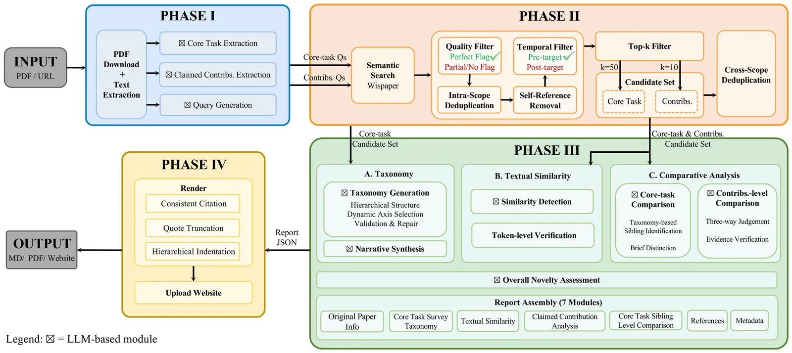 Evaluating novelty is critical yet challenging in peer review, as reviewers must assess submissions against a vast, rapidly evolving literature. This report presents OpenNovelty, an LLM-powered agentic system for transparent, evidence-based novelty analysis. The system operates through four phases: (1) extracting the core task and contribution claims to generate retrieval queries; (2) retrieving relevant prior work based on extracted queries via semantic search engine; (3) constructing a hierarchical taxonomy of core-task-related work and performing contribution-level full-text comparisons against each contribution; and (4) synthesizing all analyses into a structured novelty report with explicit citations and evidence snippets. Unlike naive LLM-based approaches, \textsc{OpenNovelty} grounds all assessments in retrieved real papers, ensuring verifiable judgments. We deploy our system on 500+ ICLR 2026 submissions with all reports publicly available on our website, and preliminary analysis suggests it can identify relevant prior work, including closely related papers that authors may overlook. OpenNovelty aims to empower the research community with a scalable tool that promotes fair, consistent, and evidence-backed peer review.