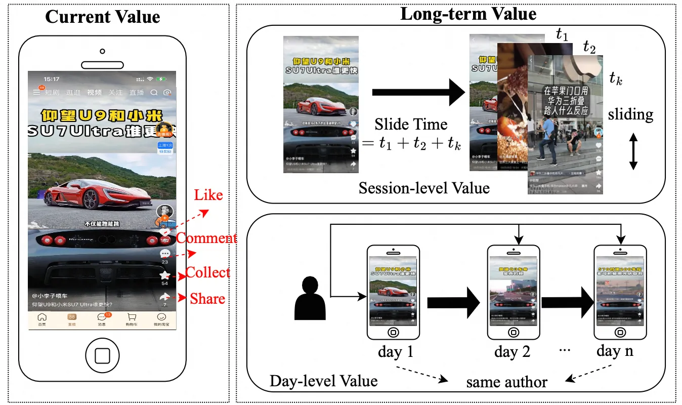 Accurately modeling long-term value (LTV) at the ranking stage of short-video recommendation remains challenging. While delayed feedback and extended engagement have been explored, fine-grained attribution and robust position normalization at billion-scale are still underdeveloped. We propose a practical ranking-stage LTV framework addressing three challenges: position bias, attribution ambiguity, and temporal limitations. (1) Position bias: We introduce a Position-aware Debias Quantile (PDQ) module that normalizes engagement via quantile-based distributions, enabling position-robust LTV estimation without architectural changes. (2) Attribution ambiguity: We propose a multi-dimensional attribution module that learns continuous attribution strengths across contextual, behavioral, and content signals, replacing static rules to capture nuanced inter-video influence. A customized hybrid loss with explicit noise filtering improves causal clarity. (3) Temporal limitations: We present a cross-temporal author modeling module that builds censoring-aware, day-level LTV targets to capture creator-driven re-engagement over longer horizons; the design is extensible to other dimensions (e.g., topics, styles). Offline studies and online A/B tests show significant improvements in LTV metrics and stable trade-offs with short-term objectives. Implemented as task augmentation within an existing ranking model, the framework supports efficient training and serving, and has been deployed at billion-scale in Taobao's production system, delivering sustained engagement gains while remaining compatible with industrial constraints.