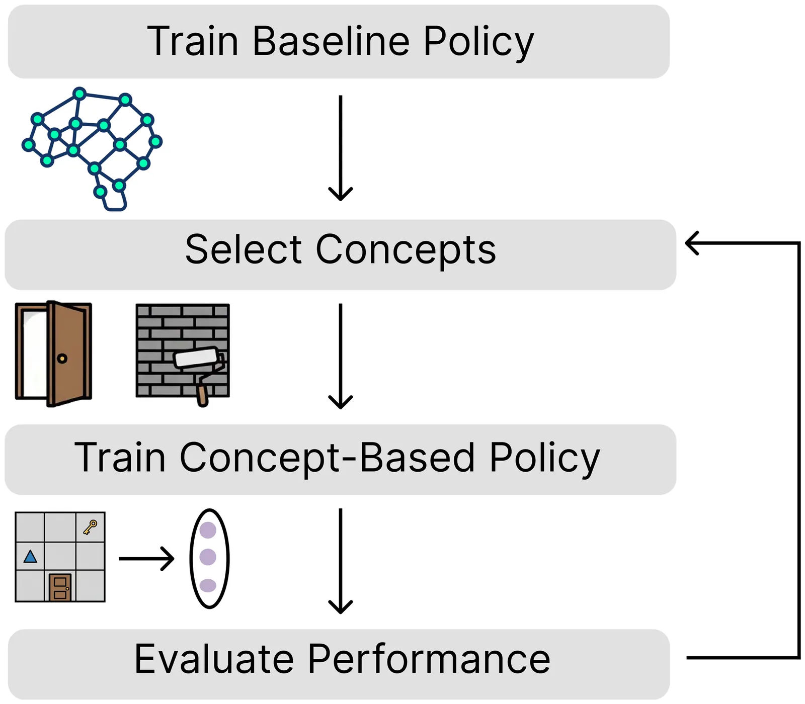 Training interpretable concept-based policies requires practitioners to manually select which human-understandable concepts an agent should reason with when making sequential decisions. This selection demands domain expertise, is time-consuming and costly, scales poorly with the number of candidates, and provides no performance guarantees. To overcome this limitation, we propose the first algorithms for principled automatic concept selection in sequential decision-making. Our key insight is that concept selection can be viewed through the lens of state abstraction: intuitively, a concept is decision-relevant if removing it would cause the agent to confuse states that require different actions. As a result, agents should rely on decision-relevant concepts; states with the same concept representation should share the same optimal action, which preserves the optimal decision structure of the original state space. This perspective leads to the Decision-Relevant Selection (DRS) algorithm, which selects a subset of concepts from a candidate set, along with performance bounds relating the selected concepts to the performance of the resulting policy. Empirically, DRS automatically recovers manually curated concept sets while matching or exceeding their performance, and improves the effectiveness of test-time concept interventions across reinforcement learning benchmarks and real-world healthcare environments.