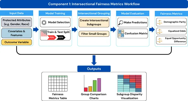Objective: Algorithmic fairness is essential for equitable and trustworthy machine learning in healthcare. Most fairness tools emphasize single-axis demographic comparisons and may miss compounded disparities affecting intersectional populations. This study introduces Fairlogue, a toolkit designed to operationalize intersectional fairness assessment in observational and counterfactual contexts within clinical settings. Methods: Fairlogue is a Python-based toolkit composed of three components: 1) an observational framework extending demographic parity, equalized odds, and equal opportunity difference to intersectional populations; 2) a counterfactual framework evaluating fairness under treatment-based contexts; and 3) a generalized counterfactual framework assessing fairness under interventions on intersectional group membership. The toolkit was evaluated using electronic health record data from the All of Us Controlled Tier V8 dataset in a glaucoma surgery prediction task using logistic regression with race and gender as protected attributes. Results: Observational analysis identified substantial intersectional disparities despite moderate model performance (AUROC = 0.709; accuracy = 0.651). Intersectional evaluation revealed larger fairness gaps than single-axis analyses, including demographic parity differences of 0.20 and equalized odds true positive and false positive rate gaps of 0.33 and 0.15, respectively. Counterfactual analysis using permutation-based null distributions produced unfairness ("u-value") estimates near zero, suggesting observed disparities were consistent with chance after conditioning on covariates. Conclusion: Fairlogue provides a modular toolkit integrating observational and counterfactual methods for quantifying and evaluating intersectional bias in clinical machine learning workflows.