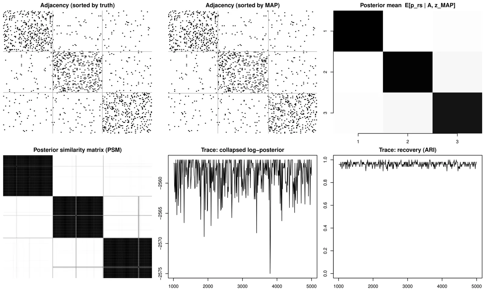 Community detection seeks to recover mesoscopic structure from network data that may be binary, count-valued, signed, directed, weighted, or multilayer. The stochastic block model (SBM) explains such structure by positing a latent partition of nodes and block-specific edge distributions. In Bayesian SBMs, standard MCMC alternates between updating the partition and sampling block parameters, which can hinder mixing and complicate principled comparison across different partitions and numbers of communities. We develop a collapsed Bayesian SBM framework in which block-specific nuisance parameters are analytically integrated out under conjugate priors, so the marginal likelihood p(Y|z) depends only on the partition z and blockwise sufficient statistics. This yields fast local Gibbs/Metropolis updates based on ratios of closed-form integrated likelihoods and provides evidence-based complexity control that discourages gratuitous over-partitioning. We derive exact collapsed marginals for the most common SBM edge types-Beta-Bernoulli (binary), Gamma-Poisson (counts), and Normal-Inverse-Gamma (Gaussian weights)-and we extend collapsing to gap-constrained SBMs via truncated conjugate priors that enforce explicit upper bounds on between-community connectivity. We further show that the same collapsed strategy supports directed SBMs that model reciprocity through dyad states, signed SBMs via categorical block models, and multiplex SBMs where multiple layers contribute additive evidence for a shared partition. Across synthetic benchmarks and real networks (including email communication, hospital contact counts, and citation graphs), collapsed inference produces accurate partitions and interpretable posterior block summaries of within- and between-community interaction strengths while remaining computationally simple and modular.