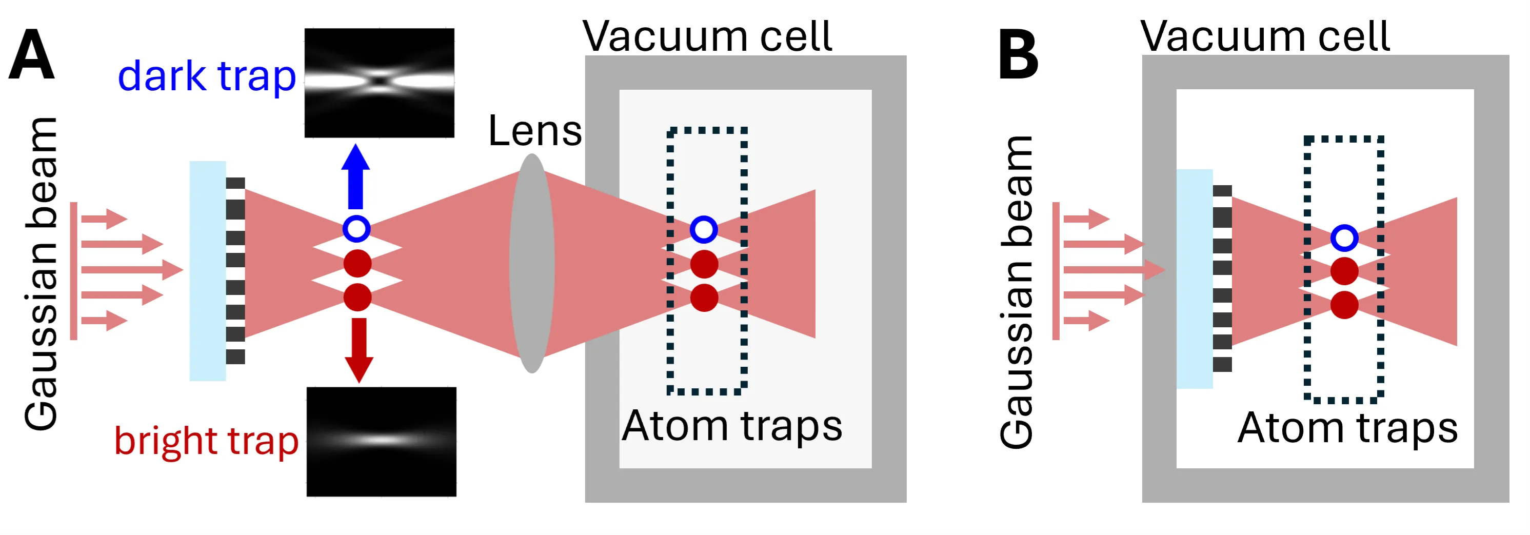 We demonstrated crystalline silicon-on-sapphire (c-SOS) metasurfaces that convert a Gaussian beam into arrays of complex optical traps, including arrays of optical bottle beams that trap atoms in dark regions interleaved with bright tweezer arrays. The high refractive index and indirect band gap of crystalline silicon makes it possible to design high-resolution near-infrared ($λ>700$ nm) metasurfaces that can be manufactured at scale using CMOS-compatible processes. Compared with active components like spatial light modulators (SLMs) that have become widely used to generate trap arrays, metasurfaces provide an indefinitely scalable number of pixels, enabling large arrays of complex traps in a very small form factor, as well as reduced dynamic noise. To design metasurfaces that can generate three-dimensional bottle beams to serve as dark traps, we modified the Gerchberg-Saxton algorithm to enforce complex-amplitude profiles at the focal plane of the metasurface and to optimize the uniformity of the traps across the array. We fabricated and measured c-SOS metasurfaces that convert a Gaussian laser beam into arrays of bright traps, dark traps, and interleaved bright/dark traps.
