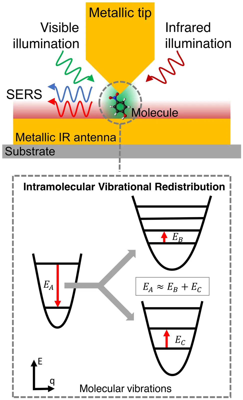 The development of accurate tools to characterize Intramolecular Vibrational Redistribution (IVR) is of major interest in chemistry. In this context, surface-enhanced vibrational spectroscopies stand up as well-established techniques to study molecular vibrational lines and populations with a sensitivity that can reach the singe-molecule level. However, to date, this possibility has not been fully developed to address IVR. Here, we establish a quantum mechanical framework based on molecular optomechanics that accounts for IVR, and adopt it to analyze strategies to optimize IVR characterization by vibrational spectroscopy. In particular, we model two different pump-and-probe configurations where the vibrational pumping is provided either by infrared laser illumination or by Stokes SERS. We show for the two pumping configurations the existence of clear signatures on the anti-Stokes SERS spectra of population transfer between coupled vibrational modes in a molecule. Our calculations adopt realistic molecular and SERS parameters, suggesting that these signatures of IVR are accessible at the single-molecule level with current experimental platforms.