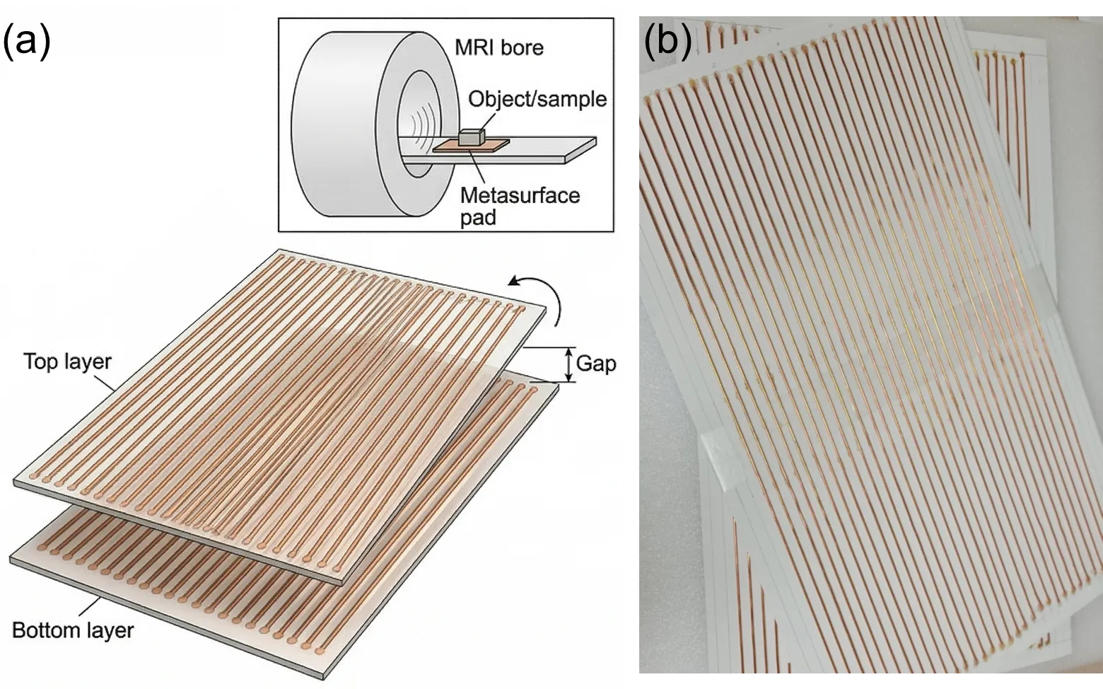 Magnetic resonance imaging (MRI) can see deep inside the body without ionizing radiation, but image quality depends strongly on how well the radio-frequency field is controlled. Passive resonant pads and metasurfaces can help, yet they often lose their tuning when they are placed next to water-rich tissue or tissue-like materials. Here we show a simple way to bring such a device back into tune. We built a bilayer metasurface made of two aluminum wire arrays. One layer can rotate relative to the other, and the gap between the two layers can also be adjusted. Bench measurements show that adding a controlled water load shifts the resonance to lower frequency by about \SIrange{4.2}{11.4}{\mega\hertz}. Rotating the layers shifts it back by about \SIrange{13.2}{14.9}{\mega\hertz}, which is much stronger than changing the gap alone. One loaded setting lands essentially at the proton frequency used in \SI{3}{\tesla} MRI. In a proof-of-concept scan on a clinical \SI{3}{\tesla} system, the metasurface made internal features in a structured pineapple phantom easier to see than in a substrate-only control. These results show that a passive MRI metasurface can be tuned after fabrication and retuned under load using geometry alone, opening a practical route to simple adjustable RF accessories for MRI.