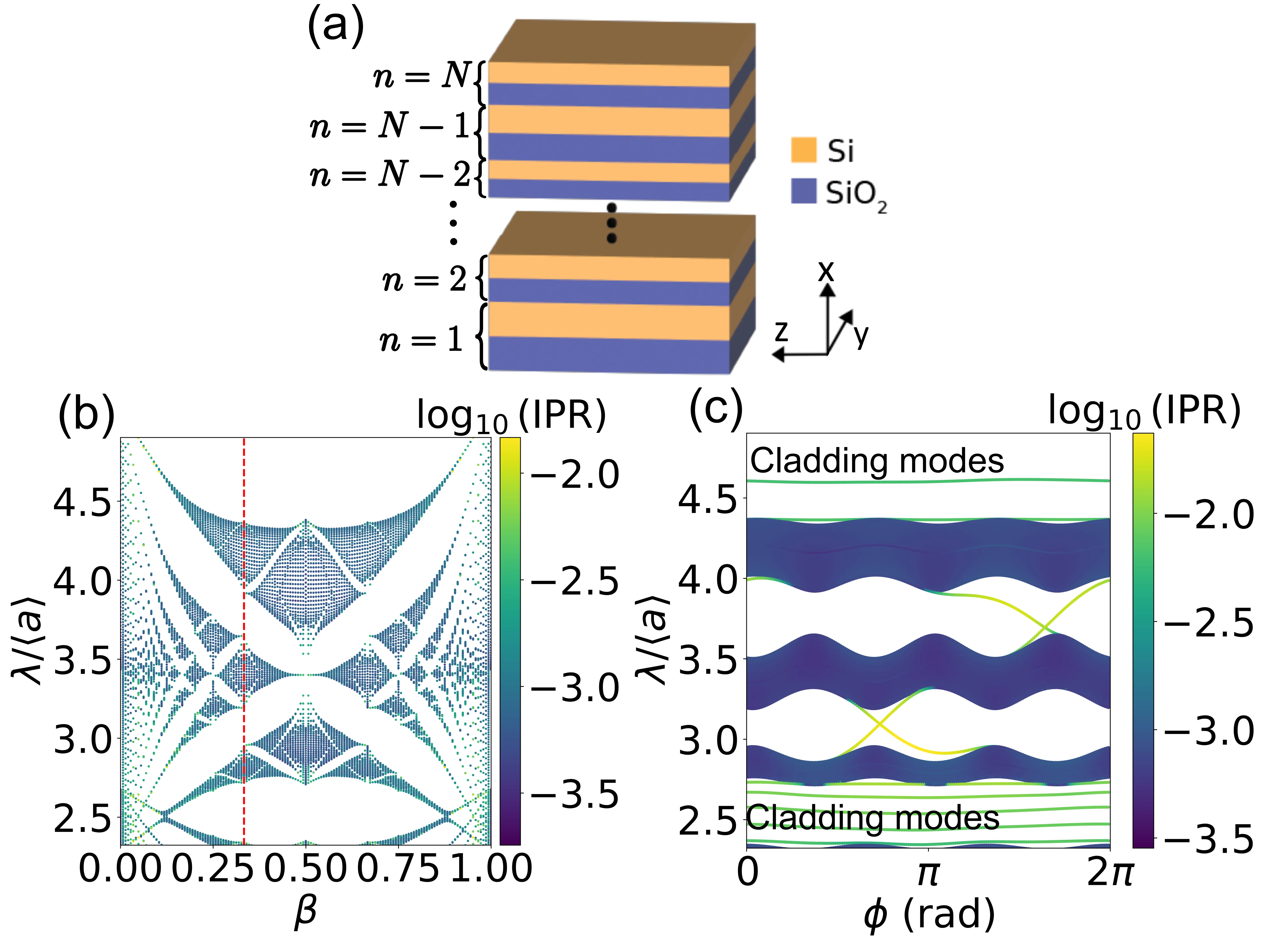 Photonic systems provide a highly tunable platform for emulating quantum Hall physics. This tunability enables probing of the interplay between strong disorder and robust topological transport that remains difficult to access in solid-state systems. Here we realize a photonic version of the Harper-Hofstadter and Aubry-André models using a one-dimensional multilayer photonic crystal (Bragg stack) with a synthetic dimension encoded in its geometry. By modulating the layer thicknesses, we observe the Hofstadter butterfly and its chiral edge states from a family of one-dimensional multilayer structures, consistent with the Thouless pump picture. Exploiting the quasiperiodicity in this model, we show that increasing quasiperiodic modulation induces a wavelength-selective localization transition: specific Chern bands become fully localized along one dimension, while chiral edge states persist and continue to wind across the gap. We confirm this behavior through numerical simulations and experiments, and eigenmode analysis reveals that edge transport in this regime proceeds via a sequence of Landau-Zener transitions between localized states. These results demonstrate a crossover from adiabatic Thouless pumping under weak quasiperiodic modulation to a Landau-Zener-mediated topological pump at strong modulation, realized in a a compact and easily tunable photonic system.