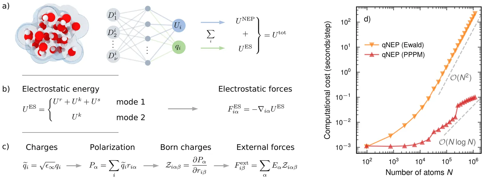 Although electrostatics can be incorporated into machine-learned interatomic potentials, existing approaches are computationally very demanding, limiting large-scale, long-time simulations of electrostatics-driven phenomena such as dielectric response, infrared activity, and field-matter coupling. Here, we extend the neuroevolution potential (NEP), a highly efficient machine-learned interatomic potential, to a charge-aware framework (qNEP) by introducing explicit, environment-dependent partial charges. Each ionic partial charge is represented by a neural network as a function of the local descriptor vector, analogous to the NEP site-energy model. This formulation enables the direct prediction of the Born effective charge tensor for each ion and, consequently, the polarization. As a result, dielectric properties, infrared spectra, and coupling to external electric fields can be evaluated within a unified framework. We derive consistent expressions for the forces and virials that explicitly account for the position dependence of the partial charges. The qNEP method has been implemented in the free-and-open-source GPUMD package, with support for both Ewald summation and particle-particle particle-mesh treatments of electrostatics. We demonstrate the accuracy and efficiency of the qNEP approach through representative applications to water, Li7La3Zr2O12, BaTiO3, and a magnesium-water interface. These results show that qNEP enables accurate atomistic simulations with explicit long-range electrostatics, scalable to million-atom systems on nanosecond time scales using consumer-grade GPUs.