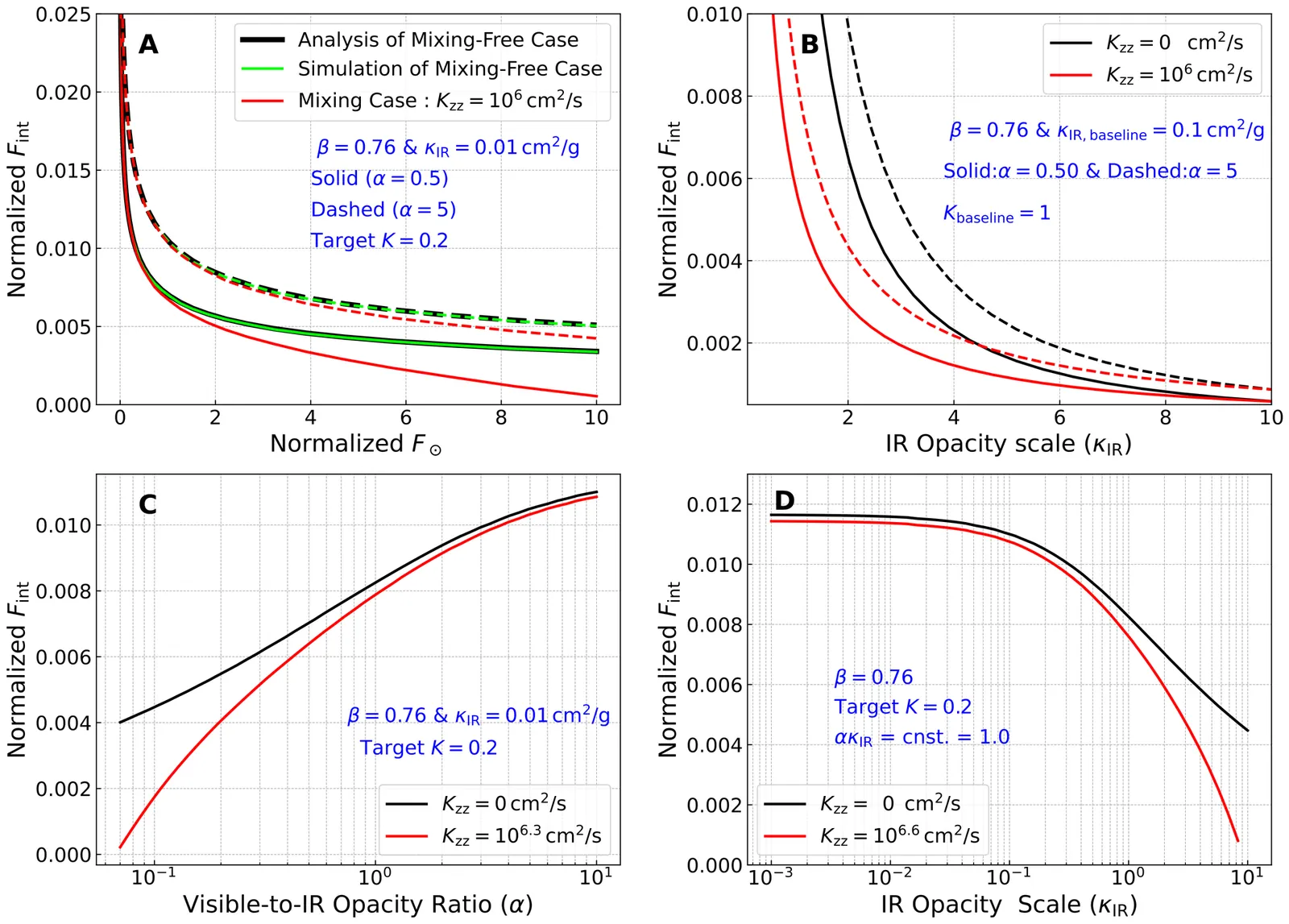 Atmospheric variations over time and space boost planetary cooling, as outgoing internal flux responds to stellar radiation and opacity. Vertical mixing regulates this cooling. Our study examines how gravity waves or large-scale induced mixing interact with radiation transfer, affecting temperature inhomogeneity and internal flux. Through the radiative-convective-mixing equilibrium, mixing increases temperature inhomogeneity in the middle and lower atmospheres, redistributing internal flux. Stronger stellar radiation and mixing significantly reduce outgoing flux, slowing cooling. With constant infrared (IR) opacity, lower visible opacity and stronger mixing significantly reduce outgoing flux. Jensen's inequality implies that greater spatial disparities in stellar flux and opacity elevate the ratio of the average internal flux in inhomogeneous columns relative to that in homogeneous columns. This effect, particularly pronounced under high opacity contrasts, amplifies deep-layer temperature inhomogeneity and may enhance cooling. However, with mixing, overall cooling is weaker than without, as both the averaged internal flux of the inhomogeneous columns and that of the homogeneous column decline more sharply for the latter. Thus, while vertical mixing-induced inhomogeneity can enhance cooling, the overall cooling effect remains weaker than in the non-mixing case. Therefore, vertical mixing, by regulating atmospheric structure and flux, is key to understanding planetary cooling.