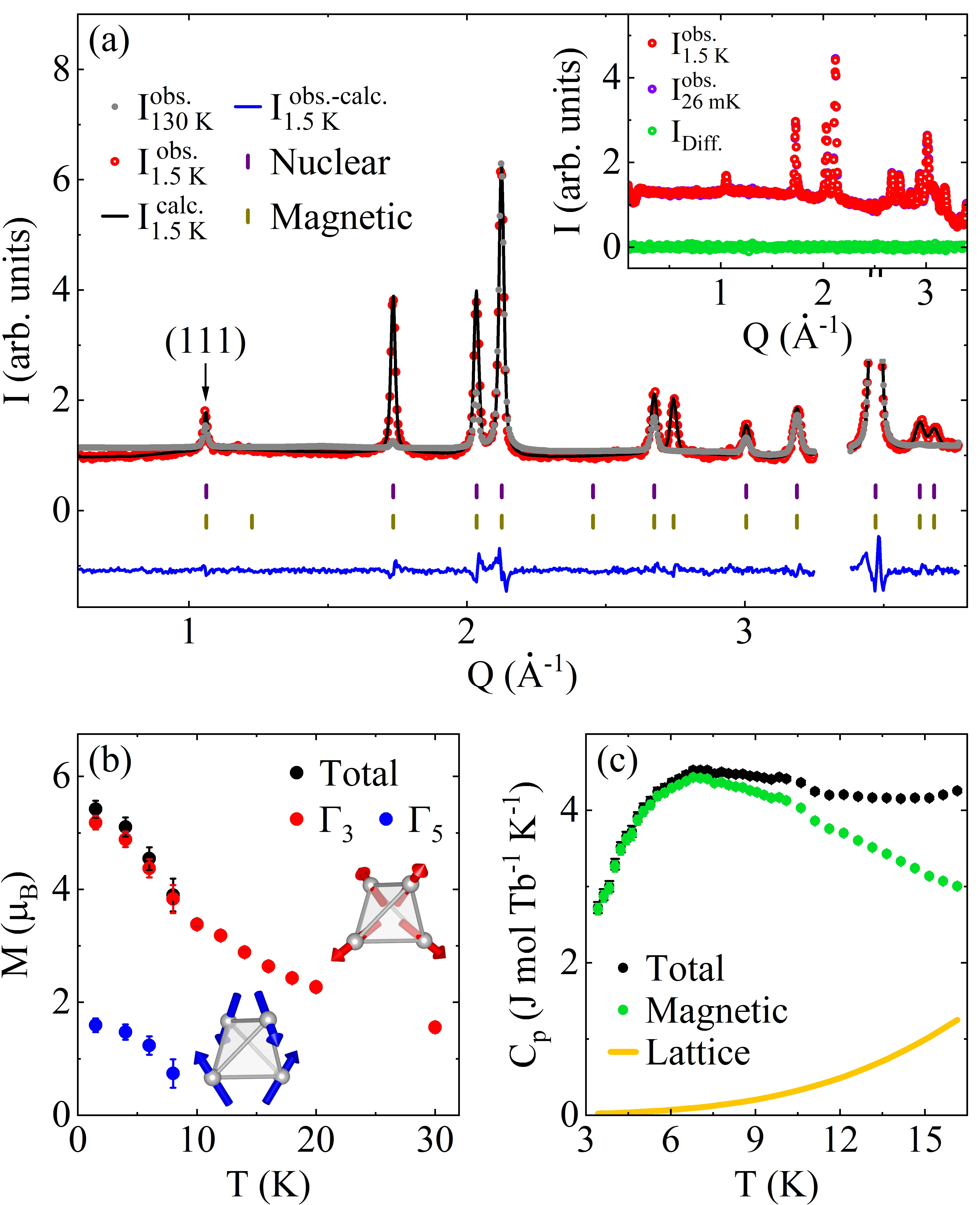 Magnetic-rare-earth pyrochlore iridates exhibit a rich variety of unconventional phases, driven by the complex interactions within and between the rare-earth and the iridium sublattices. In this study, we investigate the peculiar magnetic state of Tb$_{2}$Ir$_{2}$O$_{7}$, where a component of the Tb$^{3+}$ moment orders perpendicular to its local Ising anisotropy axis. By means of neutron diffraction and inelastic neutron scattering down to dilution temperatures, complemented by specific heat measurements, we show that this intriguing magnetic state is fully established at 1.5 K and we characterize its excitation spectrum across a broad range of energies. Our calculations reveal that bilinear interactions between Tb$^{3+}$ ions subjected to the Ir molecular field capture several key features of the experiments, but need to be supplemented to fully reproduce the observed behavior.