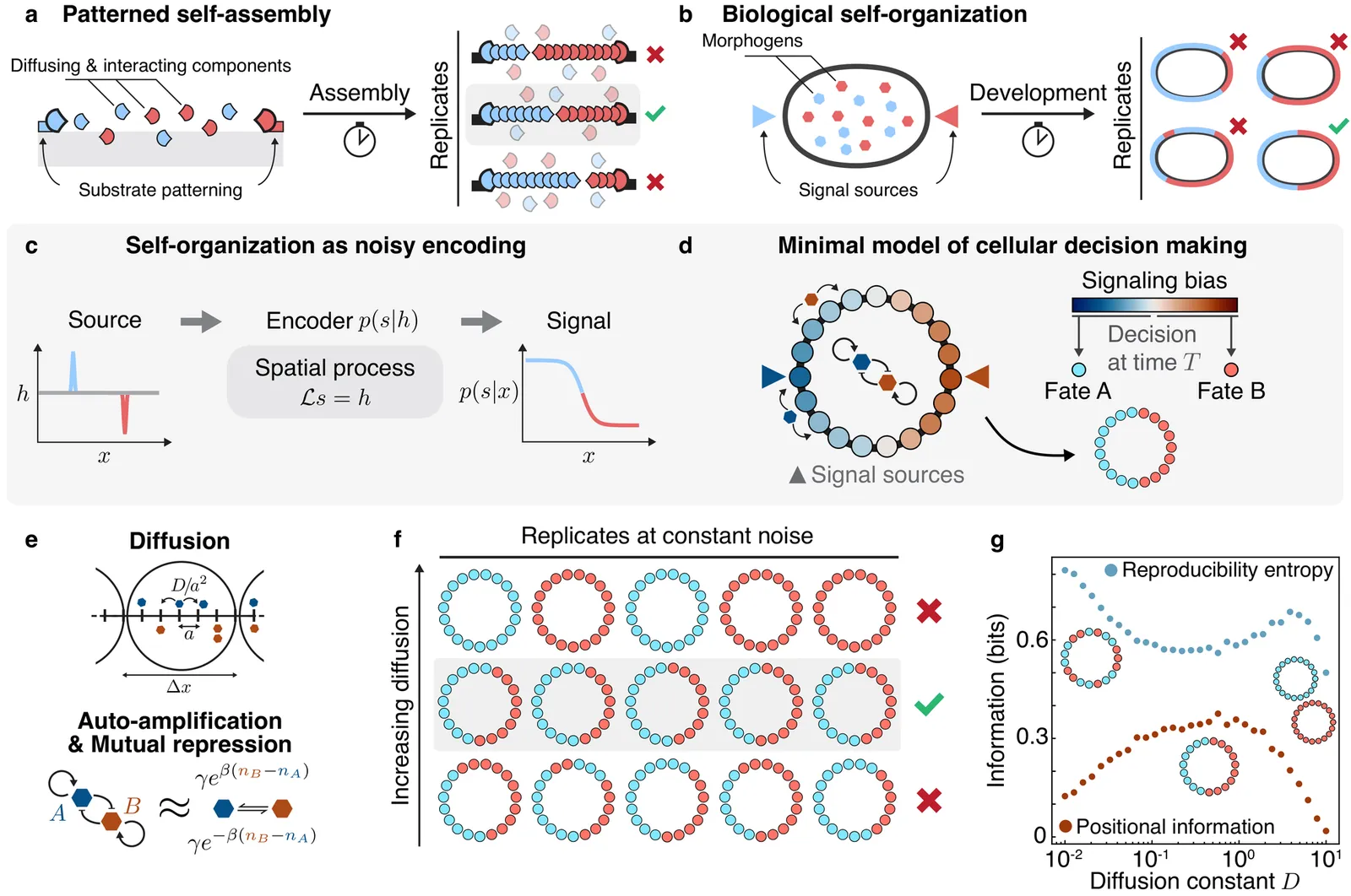 Self-assembled systems, from synthetic nanostructures to developing organisms, are composed of fluctuating units capable of forming robust functional structures despite noise. In this Letter we ask: are there fundamental bounds on the robustness of self-organized nano-systems? By viewing self-organization as noisy encoding, we prove that the positional information capacity of short-range classical systems with discrete states obeys a bound reminiscent of area laws for quantum information. This universal bound can be saturated by fine-tuning transport coefficients. When long-range correlations are present, global constraints reduce the need for fine-tuning by providing effective integral feedback. Our work identifies bio-mimetic principles for the self-assembly of synthetic nanosystems and rationalizes, on purely information-theoretic grounds, why scale separation and hierarchical structures are common motifs in biology.