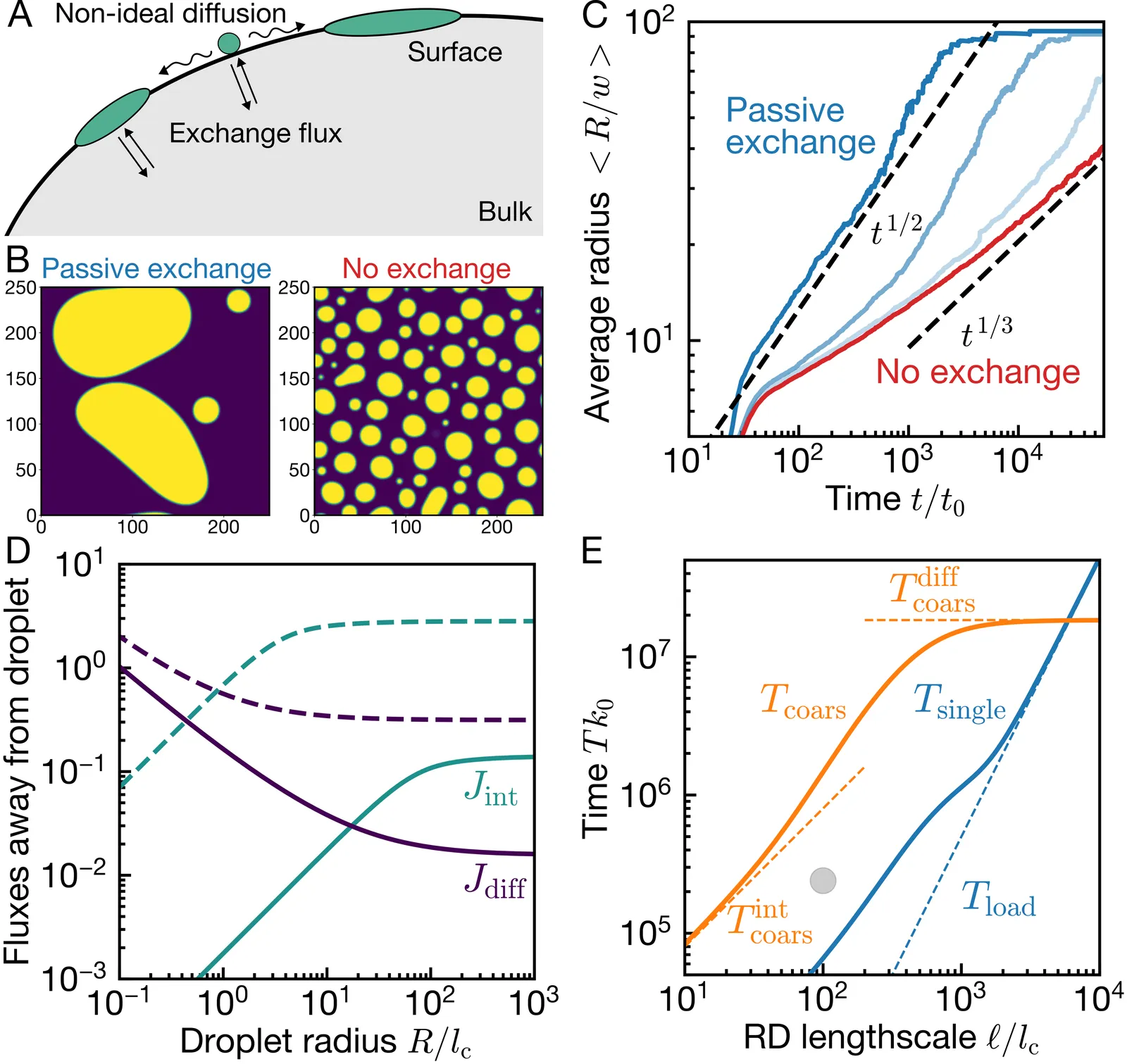 Biological membranes often exhibit heterogeneous protein patterns, which cells control. Strong patterns, like the polarity spot in budding yeast, can be described as surface condensates, formed by physical interactions between constituents. However, it is unclear how these interactions affect the material exchange with the bulk. To study this, we analyze a thermodynamically consistent model, which reveals that passive exchange generally accelerates the coarsening of surface condensates. Active exchange can further accelerate coarsening, although it can also fully arrest it and induce complex patterns involving various length scales. We reveal how these behaviors are related to non-local transport via diffusion through the bulk, rationalizing the various scaling laws we observe and allowing us to interpret biologically relevant scenarios.