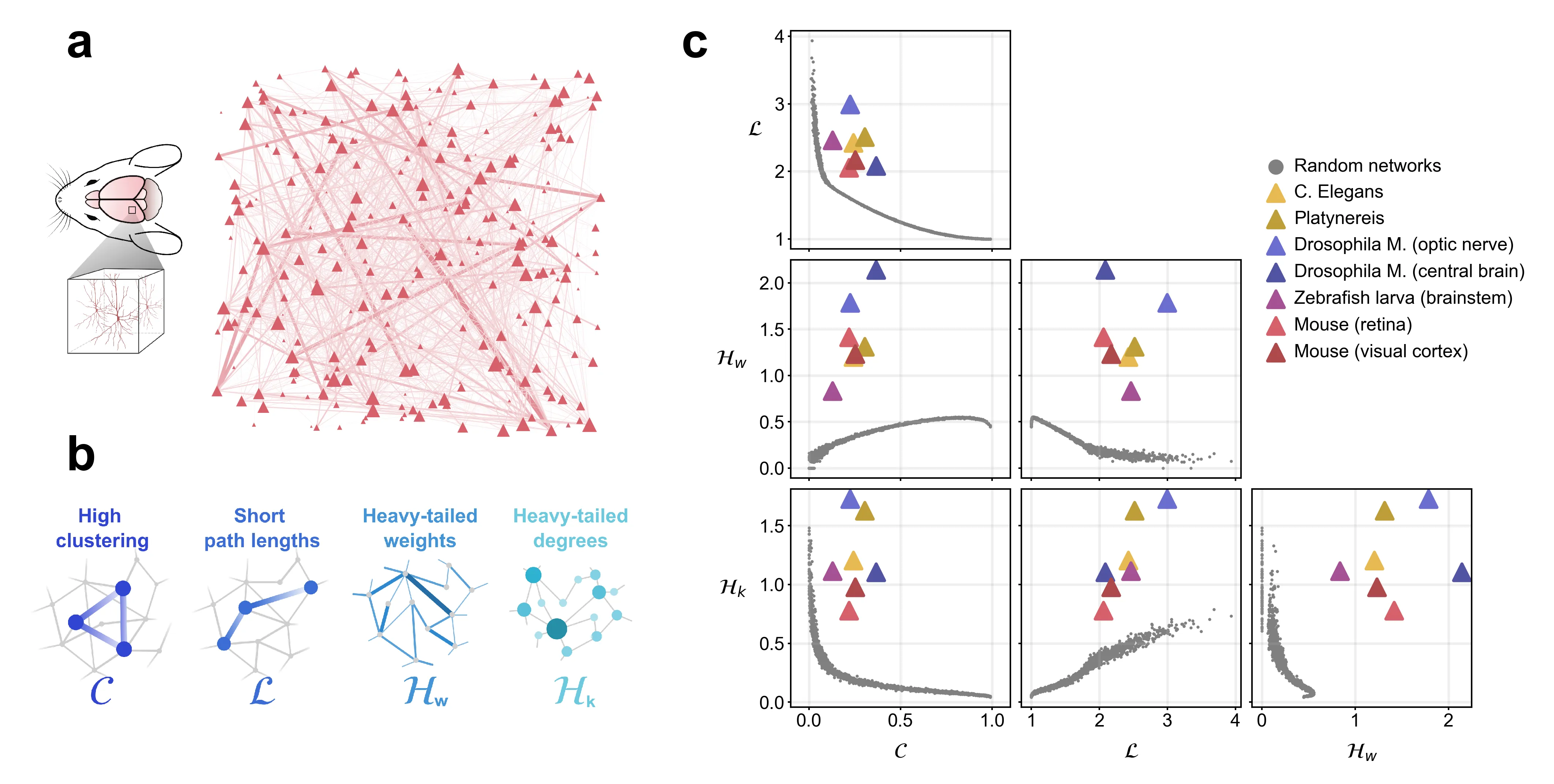 Brain networks exhibit remarkable structural properties, including high local clustering, short path lengths, and heavy-tailed weight and degree distributions. While these features are thought to enable efficient information processing with minimal wiring costs, the fundamental principles that generate such complex network architectures across species remain unclear. Here, we analyse single-neuron resolution connectomes across five species (C. Elegans, Platynereis, Drosophila M., zebrafish and mouse) to investigate the fundamental wiring principles underlying brain network formation. We show that distance-dependent connectivity alone produces small-world networks, but fails to generate heavy-tailed distributions. By incorporating weight-preferential attachment, which arises from spatial clustering of synapses along neurites, we reproduce heavy-tailed weight distributions while maintaining small-world topology. Adding degree-preferential attachment, linked to the extent of dendritic and axonal arborization, enables the generation of heavy-tailed degree distributions. Through systematic parameter exploration, we demonstrate that the combination of distance dependence, weight-preferential attachment, and degree-preferential attachment is sufficient to reproduce all characteristic properties of empirical brain networks. Our results reveal that activity-independent geometric constraints during neural development can account for the conserved architectural principles observed across evolutionarily distant species, suggesting universal mechanisms governing neural circuit assembly.