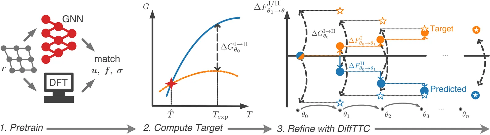 Foundational Machine Learning Potentials can resolve the accuracy and transferability limitations of classical force fields. They enable microscopic insights into material behavior through Molecular Dynamics simulations, which can crucially expedite material design and discovery. However, insufficiently broad and systematically biased reference data affect the predictive quality of the learned models. Often, these models exhibit significant deviations from experimentally observed phase transition temperatures, in the order of several hundred kelvins. Thus, fine-tuning is necessary to achieve adequate accuracy in many practical problems. This work proposes a fine-tuning strategy via top-down learning, directly correcting the wrongly predicted transition temperatures to match the experimental reference data. Our approach leverages the Differentiable Trajectory Reweighting algorithm to minimize the free energy differences between phases at the experimental target pressures and temperatures. We demonstrate that our approach can accurately correct the phase diagram of pure Titanium in a pressure range of up to 5 GPa, matching the experimental reference within tenths of kelvins and improving the liquid-state diffusion constant. Our approach is model-agnostic, applicable to multi-component systems with solid-solid and solid-liquid transitions, and compliant with top-down training on other experimental properties. Therefore, our approach can serve as an essential step towards highly accurate application-specific and foundational machine learning potentials.