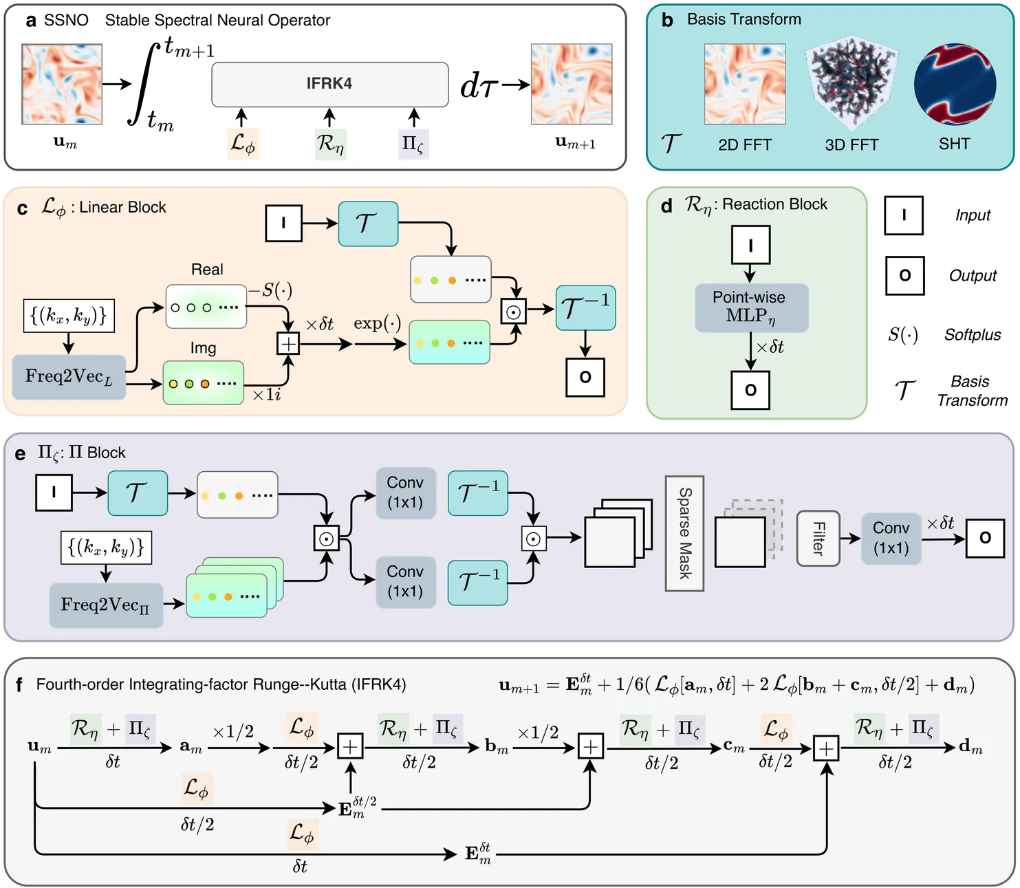 Accurate modeling of spatiotemporal dynamics is crucial to understanding complex phenomena across science and engineering. However, this task faces a fundamental challenge when the governing equations are unknown and observational data are sparse. System stiffness, the coupling of multiple time-scales, further exacerbates this problem and hinders long-term prediction. Existing methods fall short: purely data-driven methods demand massive datasets, whereas physics-aware approaches are constrained by their reliance on known equations and fine-grained time steps. To overcome these limitations, we introduce an equation-free learning framework, namely, the Stable Spectral Neural Operator (SSNO), for modeling stiff partial differential equation (PDE) systems based on limited data. Instead of encoding specific equation terms, SSNO embeds spectrally inspired structures in its architecture, yielding strong inductive biases for learning the underlying physics. It automatically learns local and global spatial interactions in the frequency domain, while handling system stiffness with a robust integrating factor time-stepping scheme. Demonstrated across multiple 2D and 3D benchmarks in Cartesian and spherical geometries, SSNO achieves prediction errors one to two orders of magnitude lower than leading models. Crucially, it shows remarkable data efficiency, requiring only very few (2--5) training trajectories for robust generalization to out-of-distribution conditions. This work offers a robust and generalizable approach to learning stiff spatiotemporal dynamics from limited data without explicit \textit{a priori} knowledge of PDE terms.