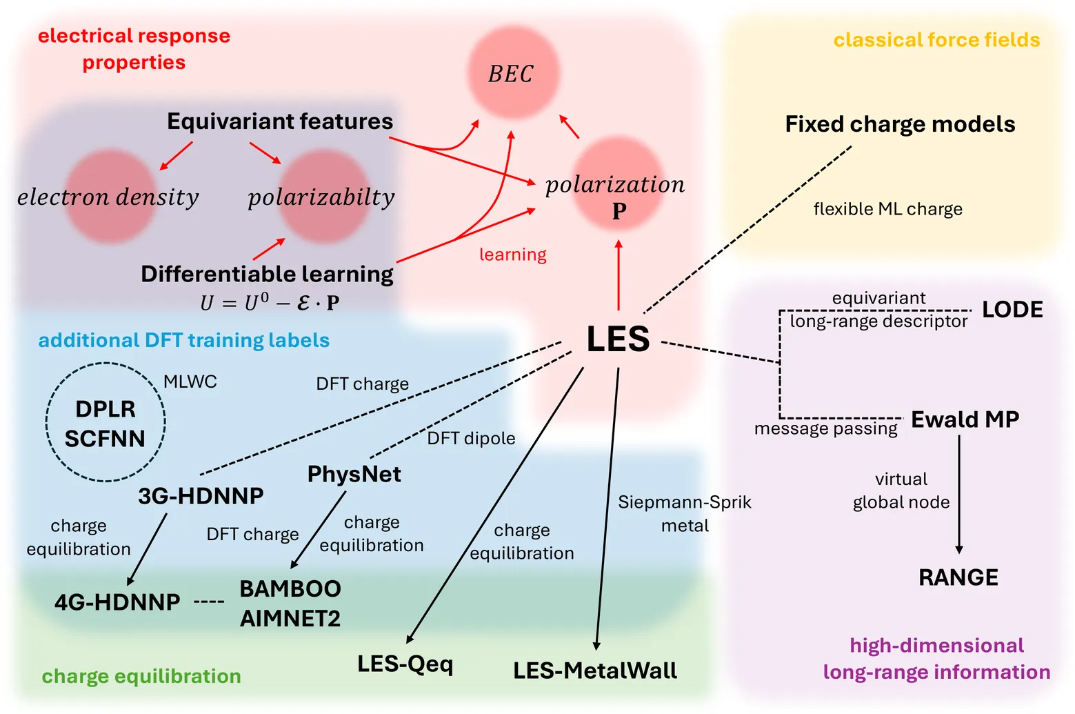 The lack of long-range electrostatics is a key limitation of modern machine learning interatomic potentials (MLIPs), hindering reliable applications to interfaces, charge-transfer reactions, polar and ionic materials, and biomolecules. In this Perspective, we distill two design principles behind the Latent Ewald Summation (LES) framework, which can capture long-range interactions, charges, and electrical response just by learning from standard energy and force training data: (i) use a Coulomb functional form with environment-dependent charges to capture electrostatic interactions, and (ii) avoid explicit training on ambiguous density functional theory (DFT) partial charges. When both principles are satisfied, substantial flexibility remains: essentially any short-range MLIP can be augmented; charge equilibration schemes can be added when desired; dipoles and Born effective charges can be inferred or finetuned; and charge/spin-state embeddings or tensorial targets can be further incorporated. We also discuss current limitations and open challenges. Together, these minimal, physics-guided design rules suggest that incorporating long-range electrostatics into MLIPs is simpler and perhaps more broadly applicable than is commonly assumed.