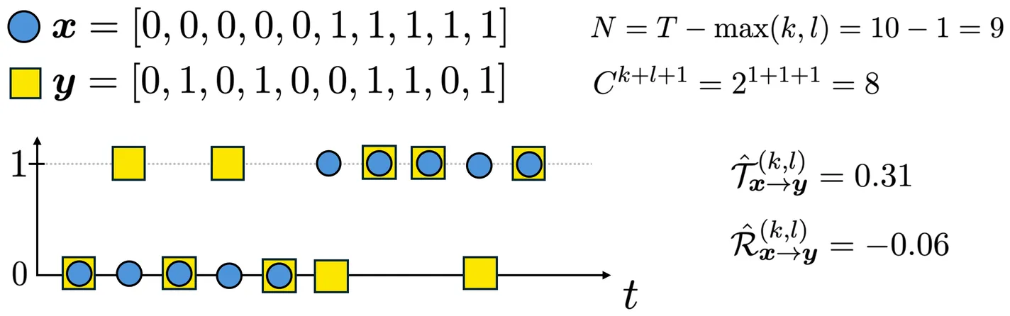 Transfer entropy is a widely used measure for quantifying directed information flows in complex systems. While the challenges of estimating transfer entropy for continuous data are well known, it has two major shortcomings for data of finite cardinality: it exhibits a substantial positive bias for sparse bin counts, and it has no clear means to assess statistical significance. By computing information content in finite data streams without explicitly considering symbols as instances of random variables, we derive a transfer entropy measure which is asymptotically equivalent to the standard plug-in estimator but remedies these issues for time series of small size and/or high cardinality, permitting a fully nonparametric assessment of statistical significance without simulation.
