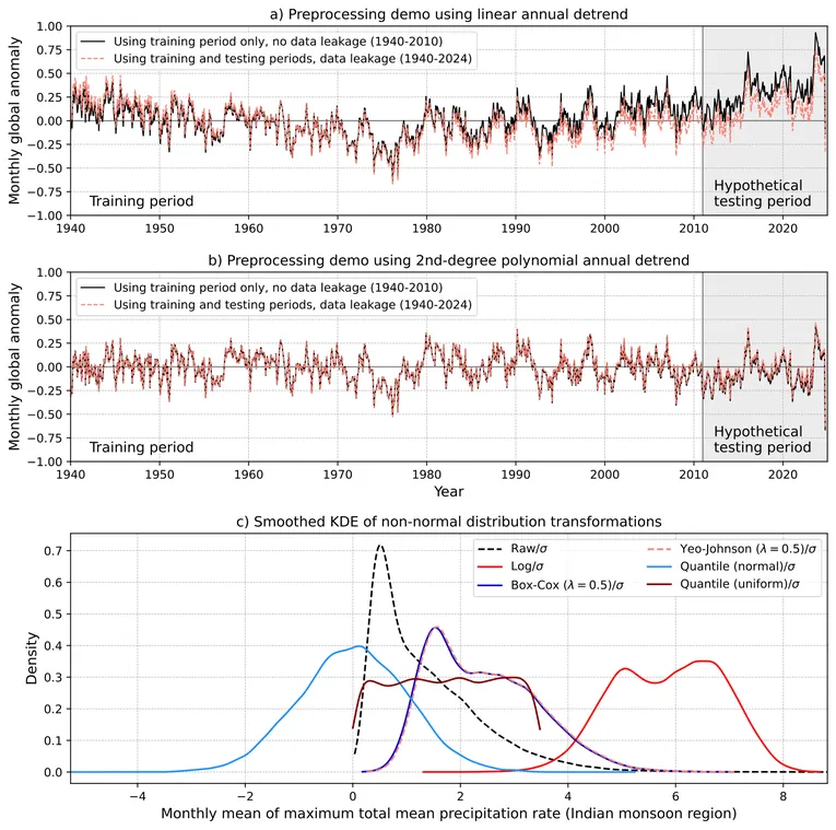 Artificial intelligence (AI) - and specifically machine learning (ML) - applications for climate prediction across timescales are proliferating quickly. The emergence of these methods prompts a revisit to the impact of data preprocessing, a topic familiar to the climate community, as more traditional statistical models work with relatively small sample sizes. Indeed, the skill and confidence in the forecasts produced by data-driven models are directly influenced by the quality of the datasets and how they are treated during model development, thus yielding the colloquialism, "garbage in, garbage out." As such, this article establishes protocols for the proper preprocessing of input data for AI/ML models designed for climate prediction (i.e., subseasonal to decadal and longer). The three aims are to: (1) educate researchers, developers, and end users on the effects that preprocessing has on climate predictions; (2) provide recommended practices for data preprocessing for such applications; and (3) empower end users to decipher whether the models they are using are properly designed for their objectives. Specific topics covered in this article include the creation of (standardized) anomalies, dealing with non-stationarity and the spatiotemporally correlated nature of climate data, and handling of extreme values and variables with potentially complex distributions. Case studies will illustrate how using different preprocessing techniques can produce different predictions from the same model, which can create confusion and decrease confidence in the overall process. Ultimately, implementing the recommended practices set forth in this article will enhance the robustness and transparency of AI/ML in climate prediction studies.