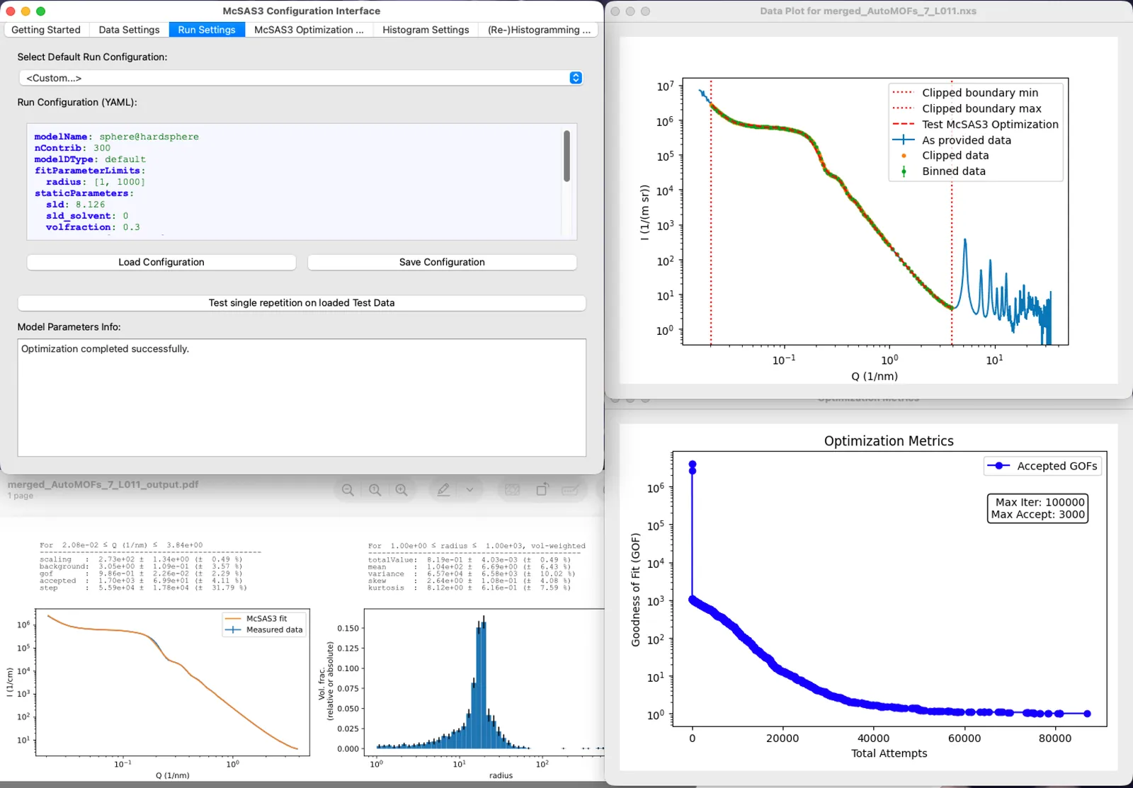 McSAS3 is the refactored successor to the original McSAS Monte Carlo small-angle scattering analysis software. It is intended to be integrated in automated data processing pipelines, but can also be used to process individual (batches of) scattering data. McSAS3 comes with a graphical user interface (McSAS3GUI), complete with guides, examples and videos. McSAS3GUI will help to generate and test the three configuration files that McSAS3 needs for data read-in, Monte Carlo optimization and histogramming. The user interface can also be used to process individual files or batches, and can be augmented with machine-specific use templates. The Monte Carlo (MC) approach is able to fit most practical scattering patterns extremely well, resulting in form-free model parameter distributions. Theoretically, these can be distributions on any model parameter, but in practice the MC-optimized parameter is usually a (volume-weighted) size distribution, in absolute volume fraction for absolute-scaled data.