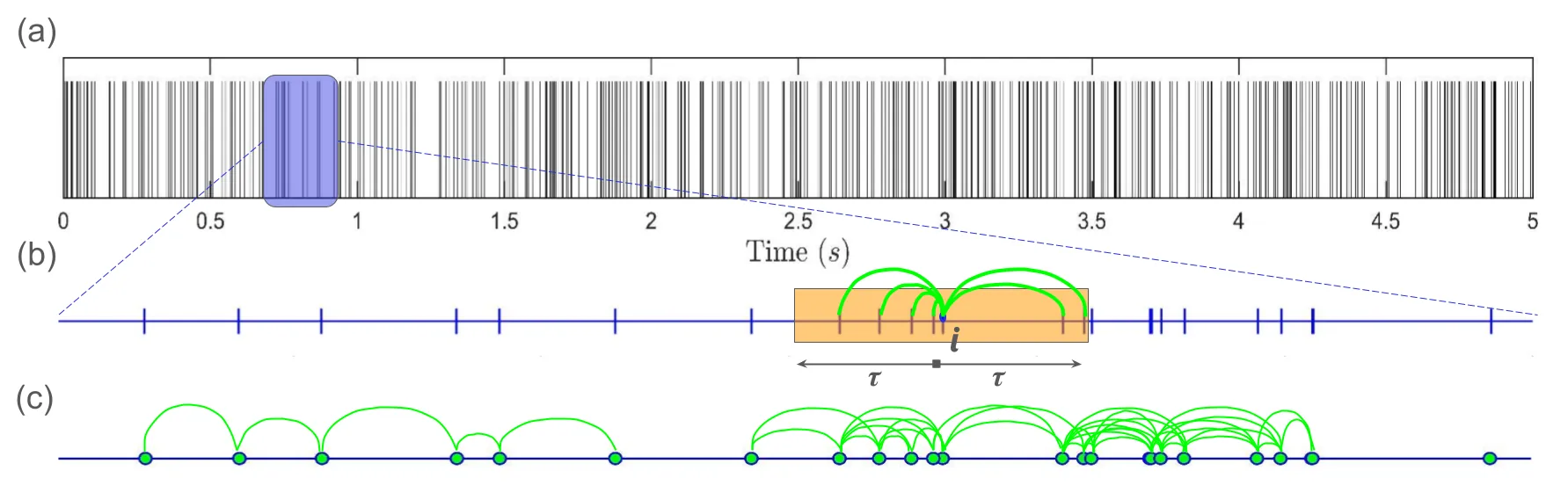 In complex systems, events occur at irregular intervals that inherently encode the underlying dynamics of the system. Analyzing the temporal clustering of these events reveals critical insights into the non-random patterns and the temporal evolution. Existing techniques can effectively quantify the overall clustering tendency of events using global statistical measures. However, these macroscopic approaches leave a critical gap, as they do not attempt to investigate the dynamics of individual clusters. Analyzing individual clusters is essential, as it helps comprehend the local interactions that actively drive the system dynamics, which may be obscured by global averaging, while simultaneously revealing the time scales involved. To address these limitations, we propose a complex network-based framework for analyzing clustering of events occurring at irregular intervals. The framework establishes connections using arrival times, transforming the time series into a network. Network properties are then used to quantify the clustering. Further, a community detection algorithm is used to identify individual clusters in time series. We illustrate the method by applying it to standard arrival processes, such as the Poisson process and the Markov-modulated Poisson process. To further demonstrate its scope, we apply the method to two diverse systems: the time series of droplet arrivals in turbulent flows and the R-R intervals in electrocardiogram (ECG) signals.