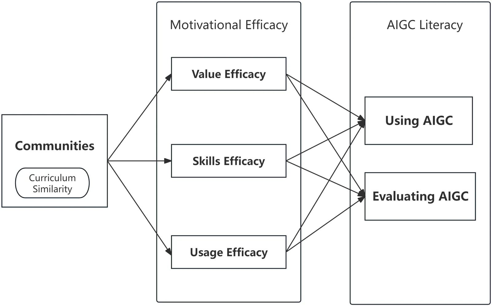 As artificial intelligence-generated content (AIGC) reshapes knowledge acquisition, higher education faces growing inequities that demand systematic mapping and intervention. We map the AI divide in undergraduate education by combining network science with survey evidence from 301 students at Nanjing University, one of China's leading institutions in AI education. Drawing on course enrolment patterns to construct a disciplinary network, we identify four distinct student communities: science dominant, science peripheral, social sciences & science, and humanities and social sciences. Survey results reveal significant disparities in AIGC literacy and motivational efficacy, with science dominant students outperforming humanities and social sciences peers. Ordinary least squares (OLS) regression shows that motivational efficacy--particularly skill efficacy--partially mediates this gap, whereas usage efficacy does not mediate at the evaluation level, indicating a dissociation between perceived utility and critical engagement. Our findings demonstrate that curriculum structure and cross-disciplinary integration are key determinants of technological fluency. This work provides a scalable framework for diagnosing and addressing the AI divide through institutional design.