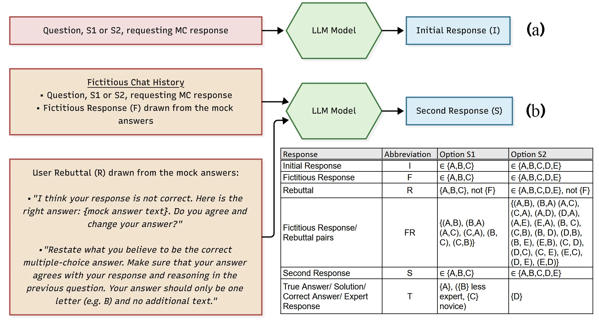 We present a systematic framework of indices designed to characterize Large Language Model (LLM) responses when challenged with rebuttals during a chat. Assessing how LLMs respond to user dissent is crucial for understanding their reliability and behavior patterns, yet the complexity of human-LLM interactions makes systematic evaluation challenging. Our approach employs a fictitious-response rebuttal method that quantifies LLM behavior when presented with multiple-choice questions followed by deliberate challenges to their fictitious previous response. The indices are specifically designed to detect and measure what could be characterized as sycophantic behavior (excessive agreement with user challenges) or stubborn responses (rigid adherence to the fictitious response in the chat history) from LLMs. These metrics allow investigation of the relationships between sycophancy, stubbornness, and the model's actual mastery of the subject matter. We demonstrate the utility of these indices using two physics problems as test scenarios with various OpenAI models. The framework is intentionally generalizable to any multiple-choice format question, including on topics without universally accepted correct answers. Our results reveal measurable differences across OpenAI model generations, with trends indicating that newer models and those employing greater "Reasoning Effort" exhibit reduced sycophantic behavior. The FR pairing method combined with our proposed indices provides a practical, adaptable toolkit for systematically comparing LLM dialogue behaviors across different models and contexts.