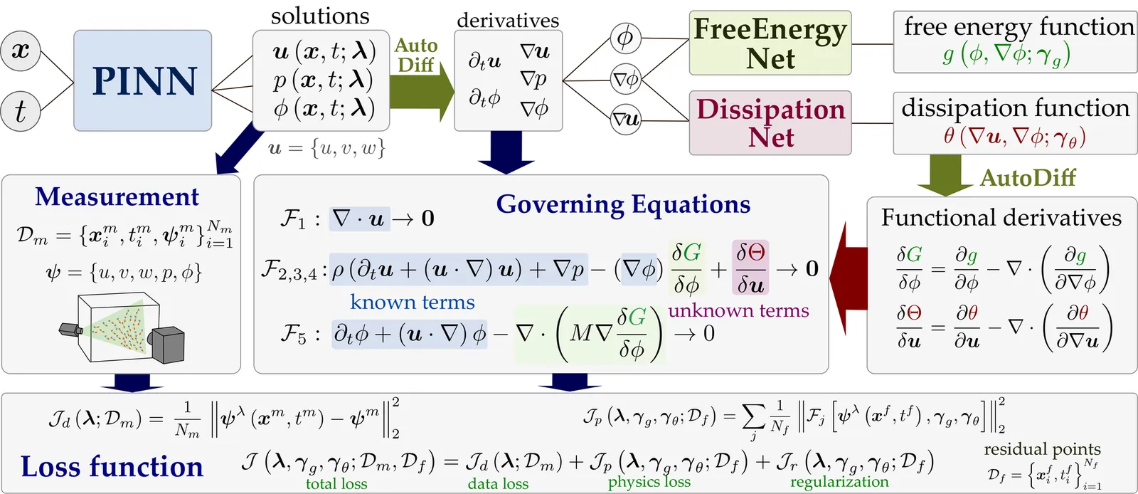 We develop a data-driven framework for discovering constitutive relations in models of fluid flow and scalar transport. Our approach infers unknown closure terms in the governing equations (gray-box discovery) under the assumption that the temporal derivative, convective transport, and pressure-gradient contributions are known. The formulation is rooted in a variational principle from nonequilibrium thermodynamics, where the dynamics is defined by a free-energy functional and a dissipation functional. The unknown constitutive terms arise as functional derivatives of these functionals with respect to the state variables. To enable a flexible and structured model discovery, the free-energy and dissipation functionals are parameterized using neural networks, while their functional derivatives are obtained via automatic differentiation. This construction enforces thermodynamic consistency by design, ensuring monotonic decay of the total free energy and non-negative entropy production. The resulting method, termed GIMLET (Generalizable and Interpretable Model Learning through Embedded Thermodynamics), avoids reliance on a predefined library of candidate functions, unlike sparse regression or symbolic identification approaches. The learned models are generalizable in that functionals identified from one dataset can be transferred to distinct datasets governed by the same underlying equations. Moreover, the inferred free-energy and dissipation functions provide direct physical interpretability of the learned dynamics. The framework is demonstrated on several benchmark systems, including the viscous Burgers equation, the Kuramoto--Sivashinsky equation, and the incompressible Navier--Stokes equations for both Newtonian and non-Newtonian fluids.