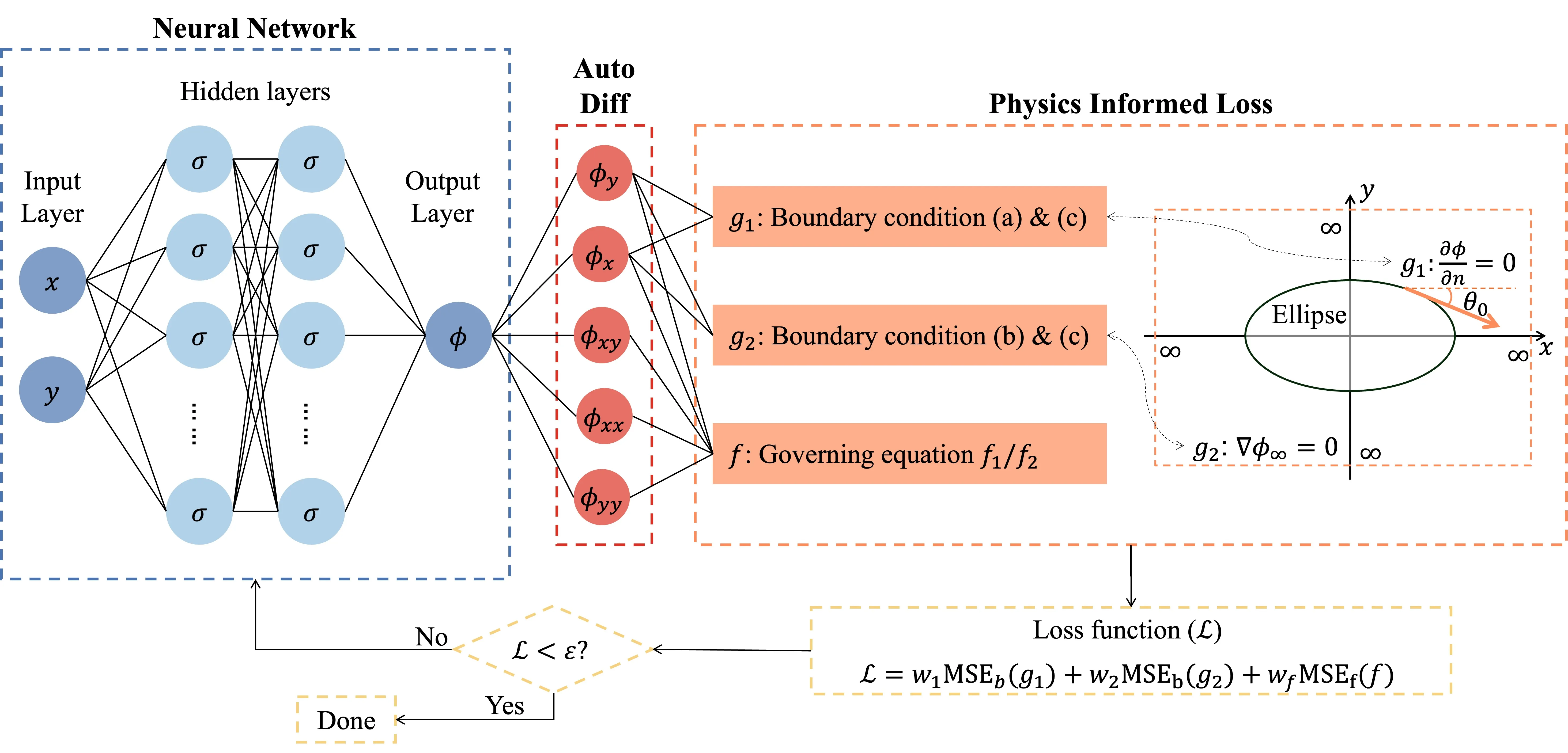 In aerodynamics, accurately modeling subsonic compressible flow over airfoils is critical for aircraft design. However, solving the governing nonlinear perturbation velocity potential equation presents computational challenges. Traditional approaches often rely on linearized equations or finite, truncated domains, which introduce non-negligible errors and limit applicability in real-world scenarios. In this study, we propose a novel framework utilizing Physics-Informed Neural Networks (PINNs) to solve the full nonlinear compressible potential equation in an unbounded (infinite) domain. We address the unbounded-domain and convergence challenges inherent in standard PINNs by incorporating a coordinate transformation and embedding physical asymptotic constraints directly into the network architecture. Furthermore, we employ a Multi-Stage PINN (MS-PINN) approach to iteratively minimize residuals, achieving solution accuracy approaching machine precision. We validate this framework by simulating flow over circular and elliptical geometries, comparing our results against traditional finite-domain and linearized solutions. Our findings quantify the noticeable discrepancies introduced by domain truncation and linearization, particularly at higher Mach numbers, and demonstrate that this new framework is a robust, high-fidelity tool for computational fluid dynamics.
