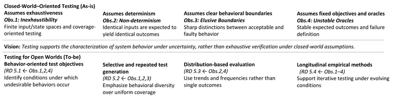 Software testing research has traditionally relied on closed-world assumptions, such as finite state spaces, reproducible executions, and stable test oracles. However, many modern software systems operate under uncertainty, non-determinism, and evolving conditions, challenging these assumptions. This paper uses open-world games as an extreme case to examine the limitations of closed-world testing. Through a set of observations grounded in prior work, we identify recurring characteristics that complicate testing in such systems, including inexhaustible behavior spaces, non-deterministic execution outcomes, elusive behavioral boundaries, and unstable test oracles. Based on these observations, we articulate a vision of software testing beyond closed-world assumptions, in which testing supports the characterization and interpretation of system behavior under uncertainty. We further discuss research directions for automated test generation, evaluation metrics, and empirical study design. Although open-world games serve as the motivating domain, the challenges and directions discussed in this paper extend to a broader class of software systems operating in dynamic and uncertain environments.