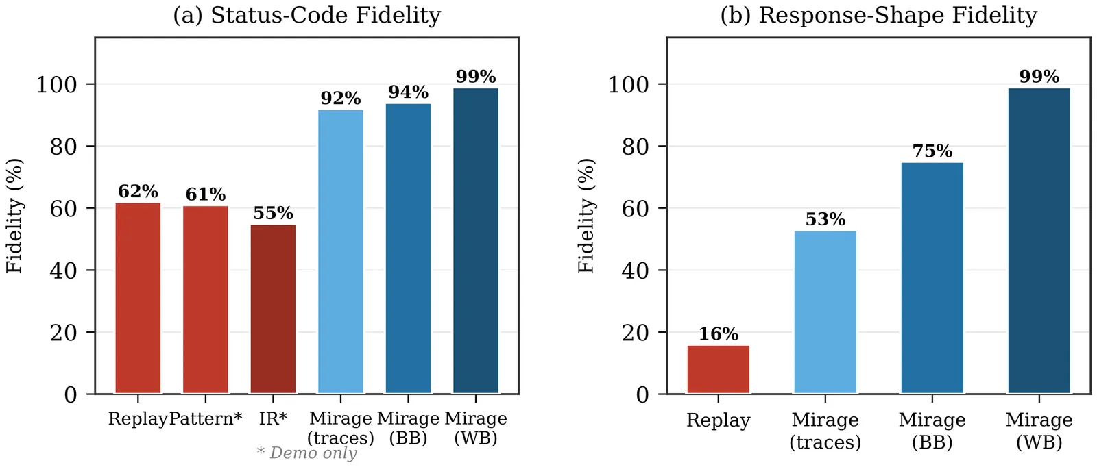 Existing approaches to microservice dependency simulation--record-replay, pattern-mining, and specification-driven stubs--generate static artifacts before test execution. We propose online LLM simulation, a runtime approach where the LLM directly answers each dependency request as it arrives, maintaining cross-request state throughout a test scenario. No mock specification is pre-generated; the model reads the dependency's source code, caller code, and production traces, then simulates dependency behavior on demand. We instantiate this approach in MIRAGE and evaluate it on 110 test scenarios spanning 14 caller-dependency pairs across three microservice systems (Google's Online Boutique, Weaveworks' Sock Shop, and a custom system). In white-box mode (dependency source available), MIRAGE achieves 99% status-code fidelity (109/110) and 99% response-shape fidelity, compared to 62% / 16% for record-replay. End-to-end, caller integration tests produce the same pass/fail outcomes with MIRAGE as with real dependencies (8/8 scenarios). A signal ablation shows dependency source code is often sufficient for high-fidelity runtime simulation (100% alone); without it, the model still infers correct error codes (94%) but loses response-structure accuracy (75%). Constraining LLM output through typed intermediate representations reduces fidelity on complex stateful services (55%) while performing adequately on simple APIs (86%), suggesting that the runtime approach's implicit state tracking matters for behavioral complexity. Results are stable across three LLM families (within 3%) at $0.16 to $0.82 per dependency.