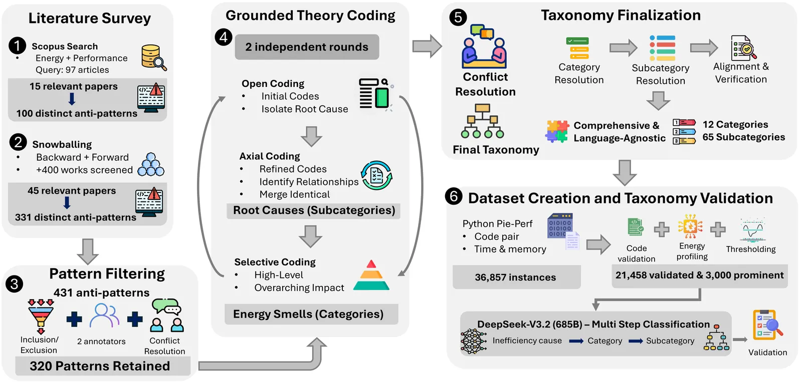 As software proliferates across domains, its aggregate energy footprint has become a major concern. To reduce software's growing environmental footprint, developers need to identify and refactor energy smells: source code implementations, design choices, or programming practices that lead to inefficient use of computing resources. Existing catalogs of such smells are either domain-specific, limited to performance anti-patterns, lack fine-grained root cause classification, or remain unvalidated against measured energy data. In this paper, we present a comprehensive, language-agnostic, taxonomy of software energy smells. Through a systematic literature review of 60 papers and exhaustive snowballing, we coded 320 inefficiency patterns into 12 primary energy smells and 65 root causes mapped to the primary smells. To empirically validate this taxonomy, we profile over 21,000 functionally equivalent Python code pairs for energy, time, and memory, and classified the top 3000 pairs by energy difference using a multi-step LLM pipeline, mapping 55 of the 65 root causes to real code. The analysis reveals that 71% of samples exhibit multiple co-occurring smells, memory-related smells yield the highest per-fix energy savings, while power draw variation across patterns confirms that energy optimization cannot be reduced to performance optimization alone. Along with the taxonomy, we release the labeled dataset, including energy profiles and reasoning traces, to the community. Together, they provide a shared vocabulary, actionable refactoring guidelines, and an empirical foundation for energy smell detection, energy-efficient code generation, and green software engineering at large.