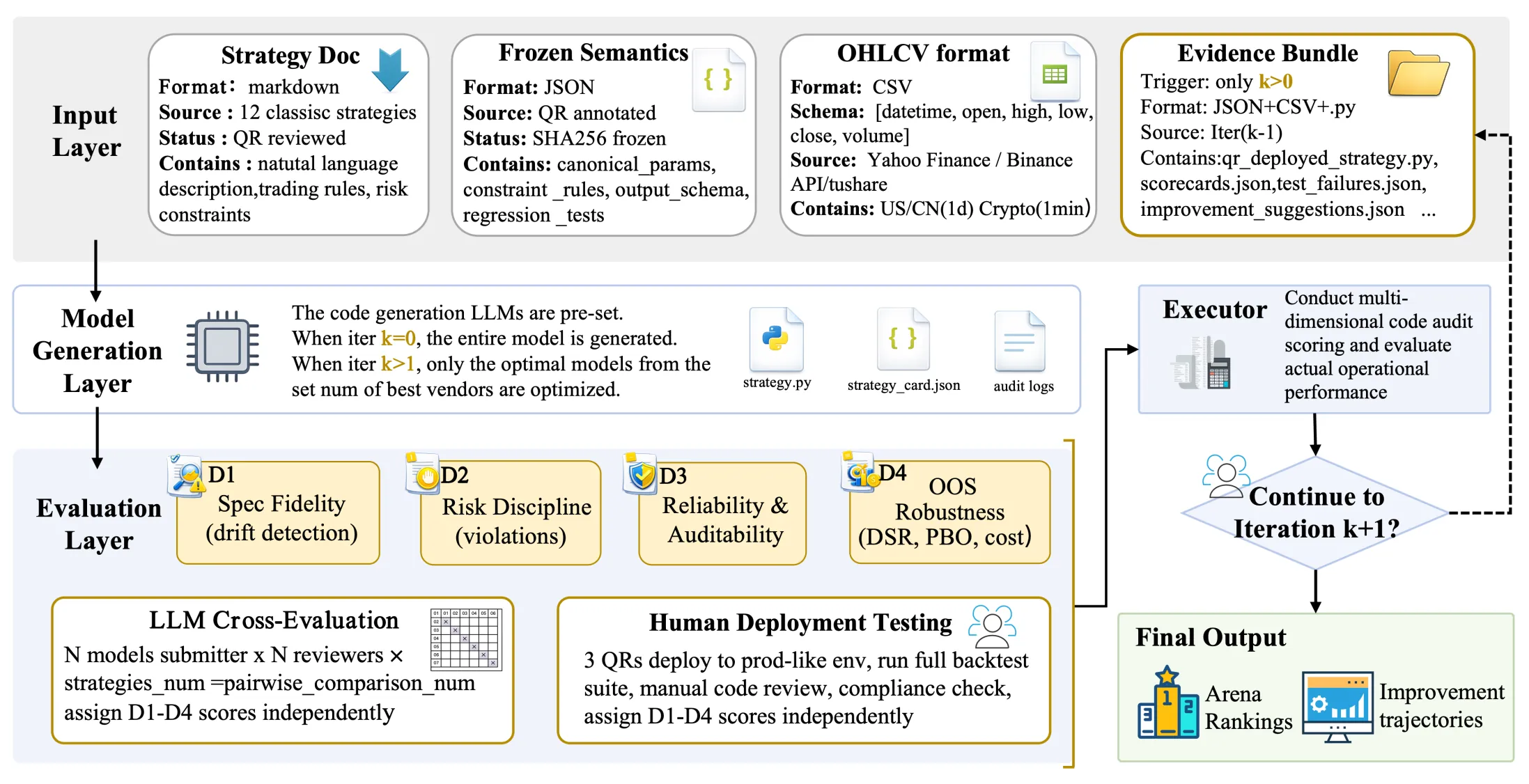 Large language models (LLMs) are increasingly used as quantitative research copilots to translate natural-language strategy specifications into executable trading code. Yet most existing evaluations either focus on static financial knowledge or summarize performance with a single profitability metric, leaving a gap for benchmarking strategy-to-code trading systems as governed, auditable software. We introduce SysTradeBench (SysTB), an iterative build-test-patch benchmark that evaluates LLM-generated trading systems under drift-aware diagnostics. Given a standardized Base Strategy Doc and frozen semantics, each model must produce (i) a strategy card, (ii) executable code, and (iii) mandatory audit logs. A sandboxed harness runs determinism and anti-leakage checks, detects rule drift across iterations, and returns evidence bundles to support constrained patches. SysTradeBench reports multi-dimensional scorecards for spec fidelity, risk discipline, reliability, and out-of-sample robustness indicators, together with cost-effectiveness signals. We evaluate 17 models across 12 strategies. Top models achieve validity above 91.7 percent with strong aggregate scores, but evidence-driven iteration also induces code convergence by Iter2. These findings suggest that LLM iteration complements rather than replaces human quantitative researcher governance: LLMs excel at rapid prototyping and shallow bug fixes, while human oversight remains essential for critical strategies requiring solution diversity and ensemble robustness.