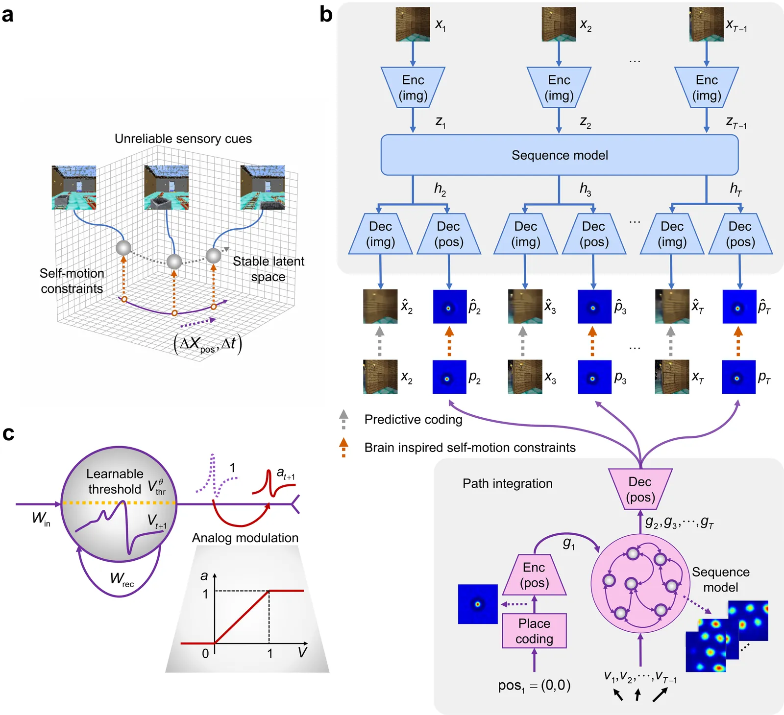 Most computational accounts of cognitive maps assume that stability is achieved primarily through sensory anchoring, with self-motion contributing to incremental positional updates only. However, biological spatial representations often remain coherent even when sensory cues degrade or conflict, suggesting that self-motion may play a deeper organizational role. Here, we show that self-motion can act as a structural prior that actively organizes the geometry of learned cognitive maps. We embed a path-integration-based motion prior in a predictive-coding framework, implemented using a capacity-efficient, brain-inspired recurrent mechanism combining spiking dynamics, analog modulation and adaptive thresholds. Across highly aliased, dynamically changing and naturalistic environments, this structural prior consistently stabilizes map formation, improving local topological fidelity, global positional accuracy and next-step prediction under sensory ambiguity. Mechanistic analyses reveal that the motion prior itself encodes geometrically precise trajectories under tight constraints of internal states and generalizes zero-shot to unseen environments, outperforming simpler motion-based constraints. Finally, deployment on a quadrupedal robot demonstrates that motion-derived structural priors enhance online landmark-based navigation under real-world sensory variability. Together, these results reframe self-motion as an organizing scaffold for coherent spatial representations, showing how brain-inspired principles can systematically strengthen spatial intelligence in embodied artificial agents.
