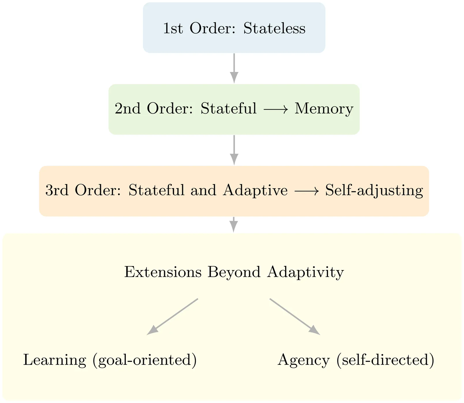 As intelligent systems are developed across diverse substrates - from machine learning models and neuromorphic hardware to in vitro neural cultures - understanding what gives a system agency has become increasingly important. Existing definitions, however, tend to rely on top-down descriptions that are difficult to quantify. We propose a bottom-up framework grounded in a system's information-processing order: the extent to which its transformation of input evolves over time. We identify three orders of information processing. Class I systems are reactive and memoryless, mapping inputs directly to outputs. Class II systems incorporate internal states that provide memory but follow fixed transformation rules. Class III systems are adaptive; their transformation rules themselves change as a function of prior activity. While not sufficient on their own, these dynamics represent necessary informational conditions for genuine agency. This hierarchy offers a measurable, substrate-independent way to identify the informational precursors of agency. We illustrate the framework with neurophysiological and computational examples, including thermostats and receptor-like memristors, and discuss its implications for the ethical and functional evaluation of systems that may exhibit agency.
