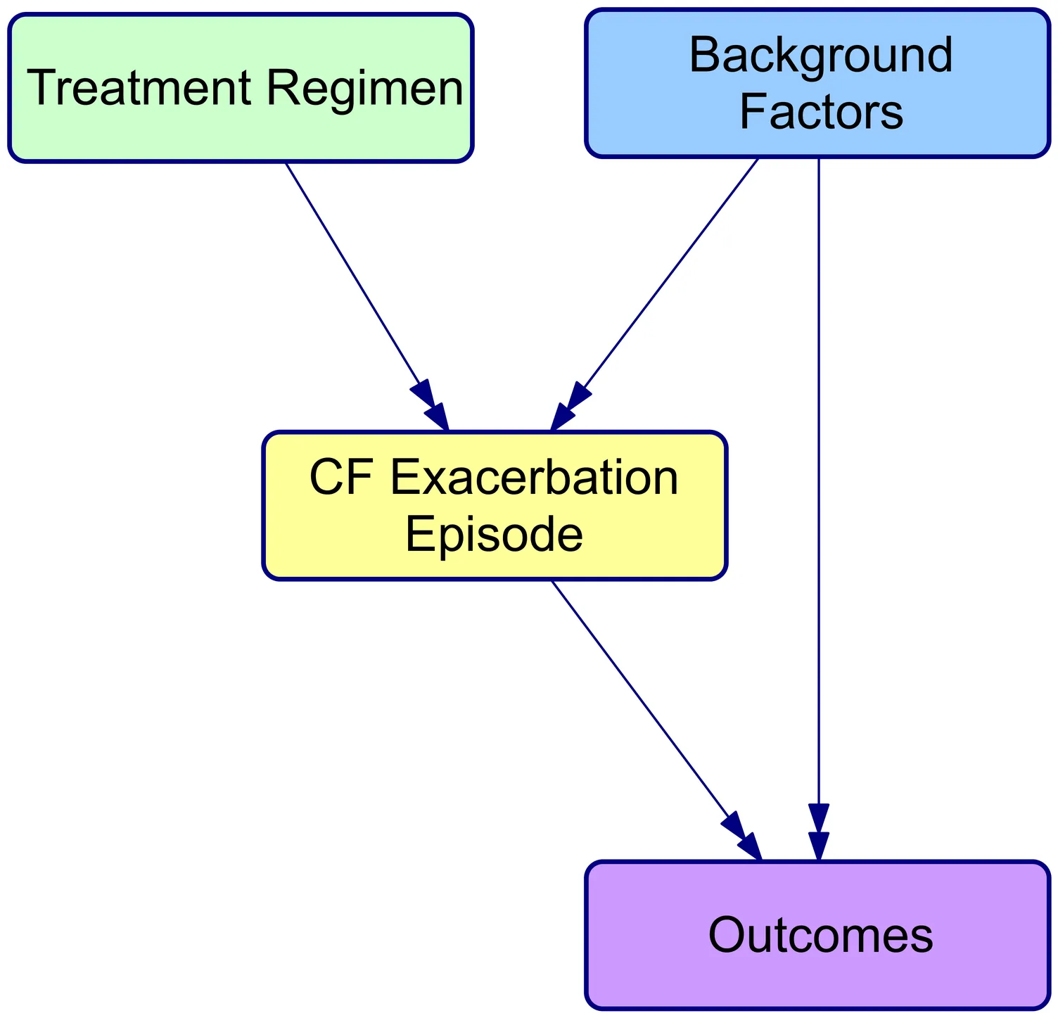 Loss of lung function in cystic fibrosis (CF) occurs progressively, punctuated by acute pulmonary exacerbations (PEx) in which abrupt declines in lung function are not fully recovered. A key component of CF management over the past half century has been the treatment of PEx to slow lung function decline. This has been credited with improvements in survival for people with CF (PwCF), but there is no consensus on the optimal approach to PEx management. BEAT-CF (Bayesian evidence-adaptive treatment of CF) was established to build an evidence-informed knowledge base for CF management. The BEAT-CF causal model is a directed acyclic graph (DAG) and Bayesian network (BN) for PEx that aims to inform the design and analysis of clinical trials comparing the effectiveness of alternative approaches to PEx management. The causal model describes relationships between background risk factors, treatments, and pathogen colonisation of the airways that affect the outcome of an individual PEx episode. The key factors, outcomes, and causal relationships were elicited from CF clinical experts and together represent current expert understanding of the pathophysiology of a PEx episode, guiding the design of data collection and studies and enabling causal inference. Here, we present the DAG that documents this understanding, along with the processes used in its development, providing transparency around our trial design and study processes, as well as a reusable framework for others.