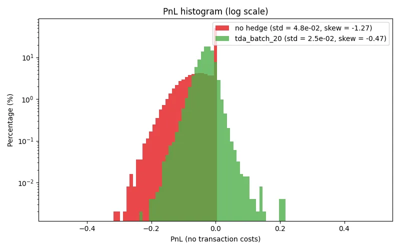 Deep hedging uses recurrent neural networks to hedge financial products that cannot be fully hedged in incomplete markets. Previous work in this area focuses on minimizing some measure of quadratic hedging error by calculating pathwise gradients, but doing so requires large batch sizes and can make training effective models in a reasonable amount of time challenging. We show that by adding certain topological features, we can reduce batch sizes substantially and make training these models more practically feasible without greatly compromising hedging performance.