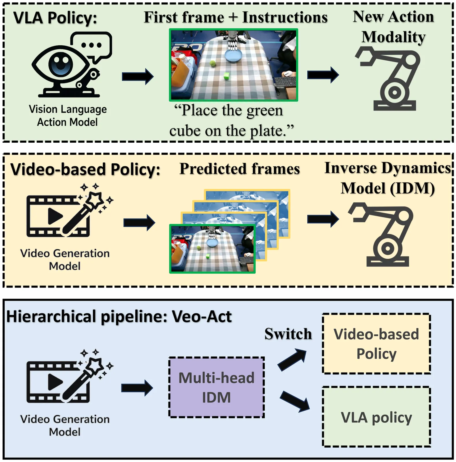 Video generation models have advanced rapidly and are beginning to show a strong understanding of physical dynamics. In this paper, we investigate how far an advanced video generation model such as Veo-3 can support generalizable robotic manipulation. We first study a zero-shot approach in which Veo-3 predicts future image sequences from current robot observations, while an inverse dynamics model IDM recovers the corresponding robot actions. The IDM is trained solely on random-play data, requiring neither human supervision nor expert demonstrations. The key intuition is that, if a video model can generate physically plausible future motions in image space, an IDM can translate those visual trajectories into executable robot actions. We evaluate this "Veo-3+IDM" approach in both simulation and the real world using a high-dimensional dexterous hand. We find that, owing to the strong generalization capability of frontier video models, Veo-3+IDM can consistently generate approximately correct task-level trajectories. However, its low-level control accuracy remains insufficient to solve most tasks reliably. Motivated by this observation, we develop a hierarchical framework, Veo-Act, which uses Veo-3 as a high-level motion planner and a VLA policy as the low-level executor, significantly improving the instruction-following performance of a state-of-the-art vision-language-action policy. Overall, our results suggest that, as video generation models continue to improve, video models can be a valuable component for generalizable robot learning.