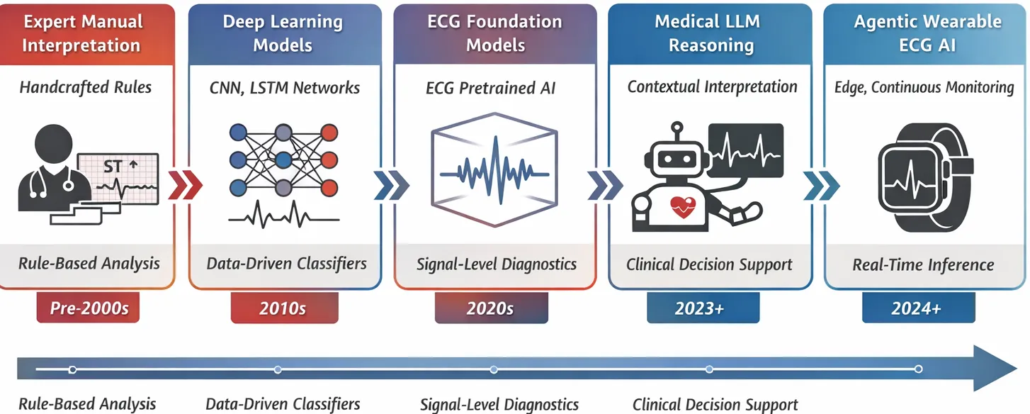 Electrocardiogram (ECG) foundation models represent a paradigm shift from task-specific pipelines to generalizable architectures pre-trained on large-scale unlabeled waveform data. This survey presents a unified and deployment-aware review of foundation models and medical large language models (LLMs) for ECG intelligence in cardiovascular disease (CVD) diagnosis, monitoring, and clinical decision support. The central thesis of this survey paper is that next-generation cardiovascular AI systems will be inherently agentic, requiring the synergistic integration of two complementary model classes: (i) ECG foundation models that act as signal-level interpreters, learning rich electrophysiological representations via self-supervised and multimodal pretraining, and (ii) medical LLMs, trained on biomedical text corpora, that function as knowledge-based reasoning backbones for contextual inference, guideline alignment, and clinical decision support. Thus, the survey systematically reviews existing pool of generalist medical LLMs, as well as ECG foundation models that utilize techniques such as self-supervised learning, multimodal ECG-language alignment, vision transformer architectures, and possess capabilities such as zero-shot classification, automated report generation, and longitudinal risk modeling. Recognizing the constraints of consumer-grade wearable edge devices, we further examine model optimization techniques such as quantization, pruning, knowledge distillation, as well as the role of small language models in enabling low-latency, energy-efficient, and privacy-preserving ECG intelligence on edge platforms such as smartwatches. Finally, we outline future directions in multimodal ECG foundation models, agent-driven monitoring, and explainable, secure edge intelligence, with particular emphasis on real-time, on-device cardiovascular analytics in consumer electronics ecosystems.