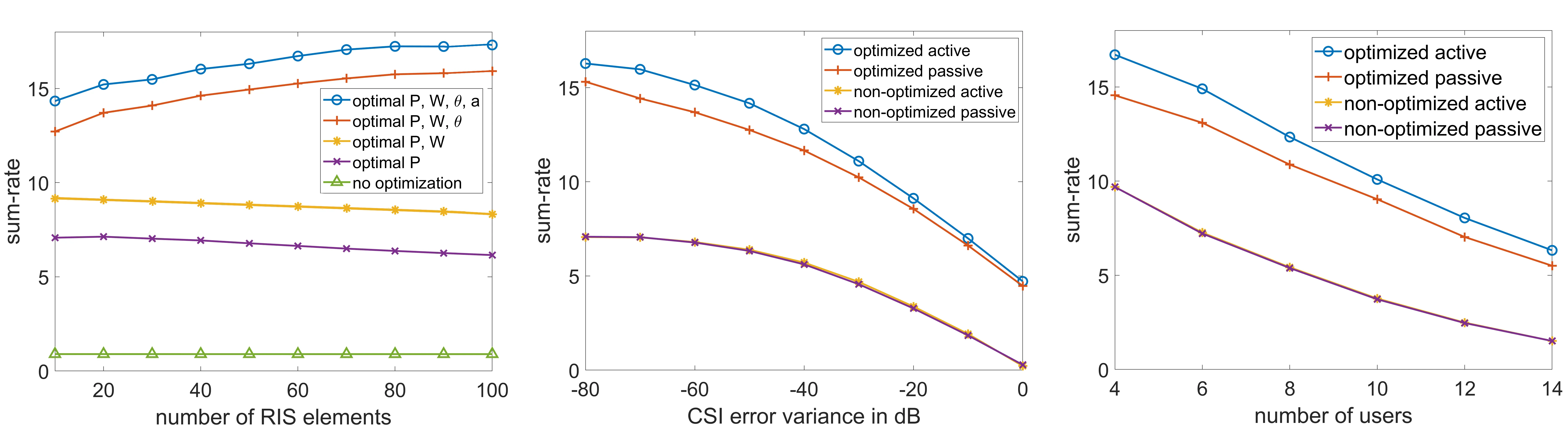In this paper, the problem of maximizing the sum-rate is addressed for a multi-user uplink scenario that is assisted by an active reconfigurable intelligent surface (RIS). The maximization is achieved by optimizing the beamforming at the base station, the users' transmit power, active RIS elements phase shifts, and active gains in presence of imperfect channel state information (CSI). The non-convex maximization problem is decomposed into sub-problems and solved via iterative approaches including the Lagrangian method, the projected gradient descent, multi-variate Taylor expansion and fractional programming. Numerical results show that the active RIS is more sensitive to CSI imperfections than passive one at high error variances.