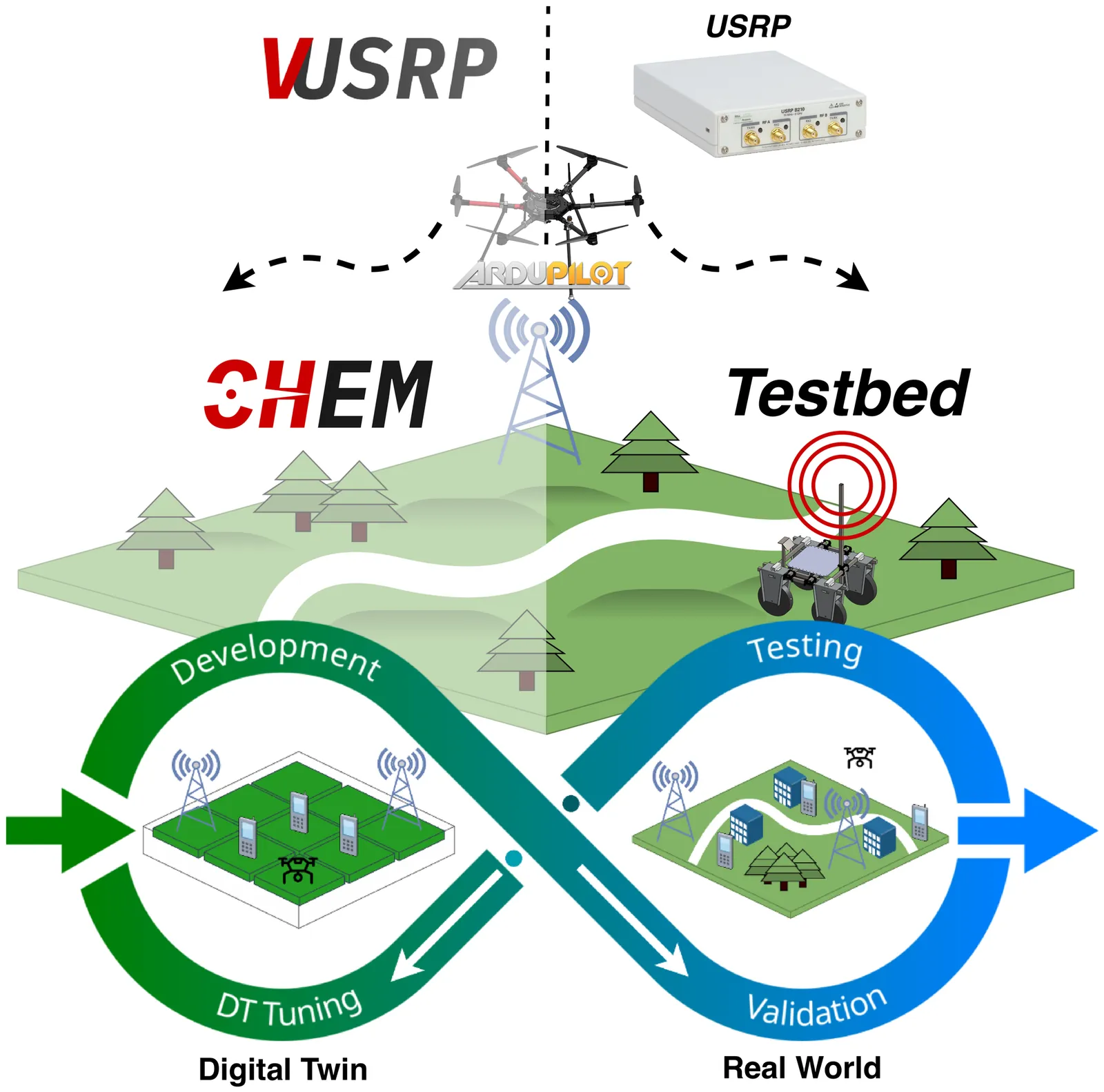 Digital twins are becoming an important tool for designing, developing, testing, and optimizing next-generation wireless communication systems. Over the past decade, system softwarization has become a reality, and wireless communication systems are no exception. Software-Defined Radios (SDRs), in general, and Universal Software Radio Peripherals (USRPs), in particular, are often used for prototyping and testing advanced wireless systems. Unfortunately, there is currently no end-to-end, software-based, general-purpose testing environment for SDR-based systems: developers often rely on benchtop setups or even small testbeds, but those are costly and cumbersome to build. At the other end of the spectrum, simulations often rely on simplified channel/radio models and typically do not execute full-stack production code, which can increase development effort and reduce fidelity. In this paper, we propose ACHEM (A Channel Emulator), the first software-based, end-to-end wireless channel emulation environment and toolset for communication systems based on SDRs, specifically USRPs. With the proposed emulator and toolkit, any USRP-based system can be fully emulated at the I/Q level in a pure digital environment without requiring specialized hardware (e.g., vehicles, USRPs, FPGAs, or GPUs). The proposed emulator supports multiple transmitters and receivers, MIMO communications, multiple frequencies, heterogeneous sampling rates, real-time node mobility through vehicle emulation, antenna radiation patterns, and various channel models. ACHEM facilitates wireless digital twin development and deployment. ACHEM is validated with several popular open-source USRP-based wireless communication applications, including GNU Radio, srsRAN 4G/5G, and OpenAirInterface.