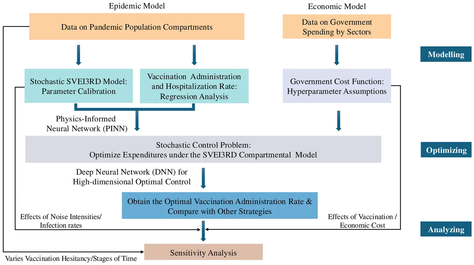 Epidemic risk assessment poses inherent challenges, with traditional approaches often failing to balance health outcomes and economic constraints. This paper presents a data-driven decision support tool that models epidemiological dynamics and optimises vaccination strategies to control disease spread whilst minimising economic losses. The proposed economic-epidemiological framework comprises three phases: modelling, optimising, and analysing. First, a stochastic compartmental model captures epidemic dynamics. Second, an optimal control problem is formulated to derive vaccination strategies that minimise pandemic-related expenditure. Given the analytical intractability of epidemiological models, neural networks are employed to calibrate parameters and solve the high-dimensional control problem. The framework is demonstrated using COVID-19 data from Victoria, Australia, empirically deriving optimal vaccination strategies that simultaneously minimise disease incidence and governmental expenditure. By employing this three-phase framework, policymakers can adjust input values to reflect evolving transmission dynamics and continuously update strategies, thereby minimising aggregate costs, aiding future pandemic preparedness.
