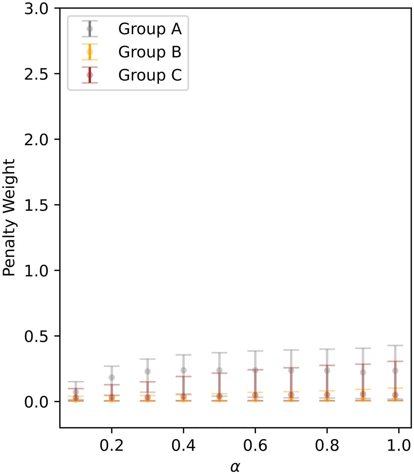 Fair regression methods have the potential to mitigate societal bias concerns in health care, but there has been little work on penalized fair regression when multiple groups experience such bias. We propose a general regression framework that addresses this gap with unfairness penalties for multiple groups. Our approach is demonstrated for binary outcomes with true positive rate disparity penalties. It can be efficiently implemented through reduction to a cost-sensitive classification problem. We additionally introduce novel score functions for automatically selecting penalty weights. Our penalized fair regression methods are empirically studied in simulations, where they achieve a fairness-accuracy frontier beyond that of existing comparison methods. Finally, we apply these methods to a national multi-site primary care study of chronic kidney disease to develop a fair classifier for end-stage renal disease. There we find substantial improvements in fairness for multiple race and ethnicity groups who experience societal bias in the health care system without any appreciable loss in overall fit.