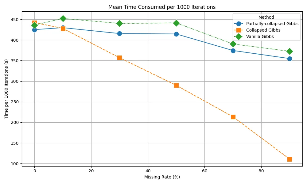 The Hidden Markov Model (HMM) is a widely-used statistical model for handling sequential data. However, the presence of missing observations in real-world datasets often complicates the application of the model. The EM algorithm and Gibbs samplers can be used to estimate the model, yet suffering from various problems including non-convexity, high computational complexity and slow mixing. In this paper, we propose a collapsed Gibbs sampler that efficiently samples from HMMs' posterior by integrating out both the missing observations and the corresponding latent states. The proposed sampler is fast due to its three advantages. First, it achieves an estimation accuracy that is comparable to existing methods. Second, it can produce a larger Effective Sample Size (ESS) per iteration, which can be justified theoretically and numerically. Third, when the number of missing entries is large, the sampler has a significant smaller computational complexity per iteration compared to other methods, thus is faster computationally. In summary, the proposed sampling algorithm is fast both computationally and theoretically and is particularly advantageous when there are a lot of missing entries. Finally, empirical evaluations based on numerical simulations and real data analysis demonstrate that the proposed algorithm consistently outperforms existing algorithms in terms of time complexity and sampling efficiency (measured in ESS).