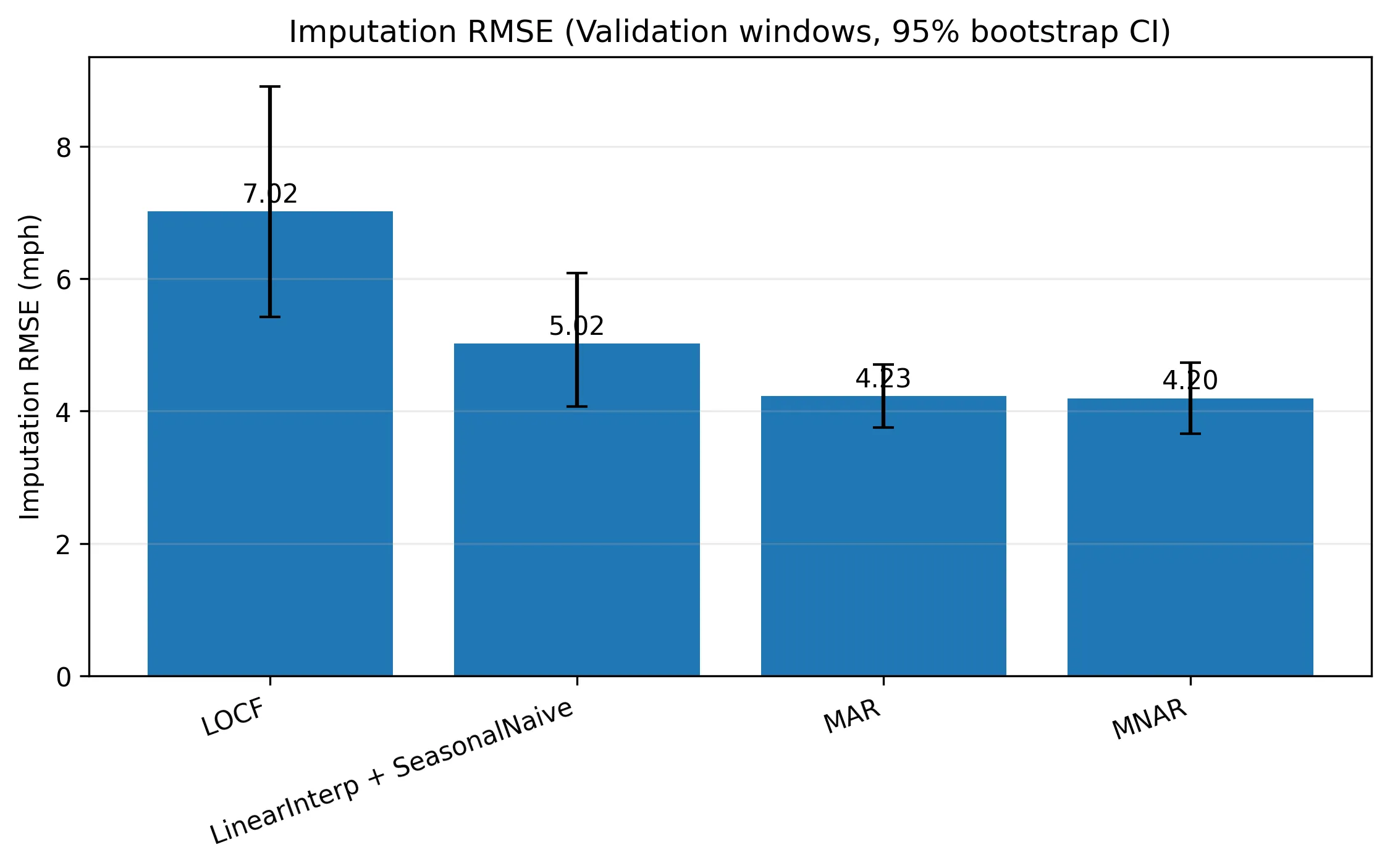 Large-scale traffic forecasting relies on fixed sensor networks that often exhibit blackouts: contiguous intervals of missing measurements caused by detector or communication failures. These outages are typically handled under a Missing At Random (MAR) assumption, even though blackout events may correlate with unobserved traffic conditions (e.g., congestion or anomalous flow), motivating a Missing Not At Random (MNAR) treatment. We propose a latent state-space framework that jointly models (i) traffic dynamics via a linear dynamical system and (ii) sensor dropout via a Bernoulli observation channel whose probability depends on the latent traffic state. Inference uses an Extended Kalman Filter with Rauch-Tung-Striebel smoothing, and parameters are learned via an approximate EM procedure with a dedicated update for detector-specific missingness parameters. On the Seattle inductive loop detector data, introducing latent dynamics yields large gains over naive baselines, reducing blackout imputation RMSE from 7.02 (LOCF) and 5.02 (linear interpolation + seasonal naive) to 4.23 (MAR LDS), corresponding to about a 64% reduction in MSE relative to LOCF. Explicit MNAR modeling provides a consistent but smaller additional improvement on real data (imputation RMSE 4.20; 0.8% RMSE reduction relative to MAR), with similar modest gains for short-horizon post-blackout forecasts (evaluated at 1, 3, and 6 steps). In controlled synthetic experiments, the MNAR advantage increases as the true missingness dependence on latent state strengthens. Overall, temporal dynamics dominate performance, while MNAR modeling offers a principled refinement that becomes most valuable when missingness is genuinely informative.