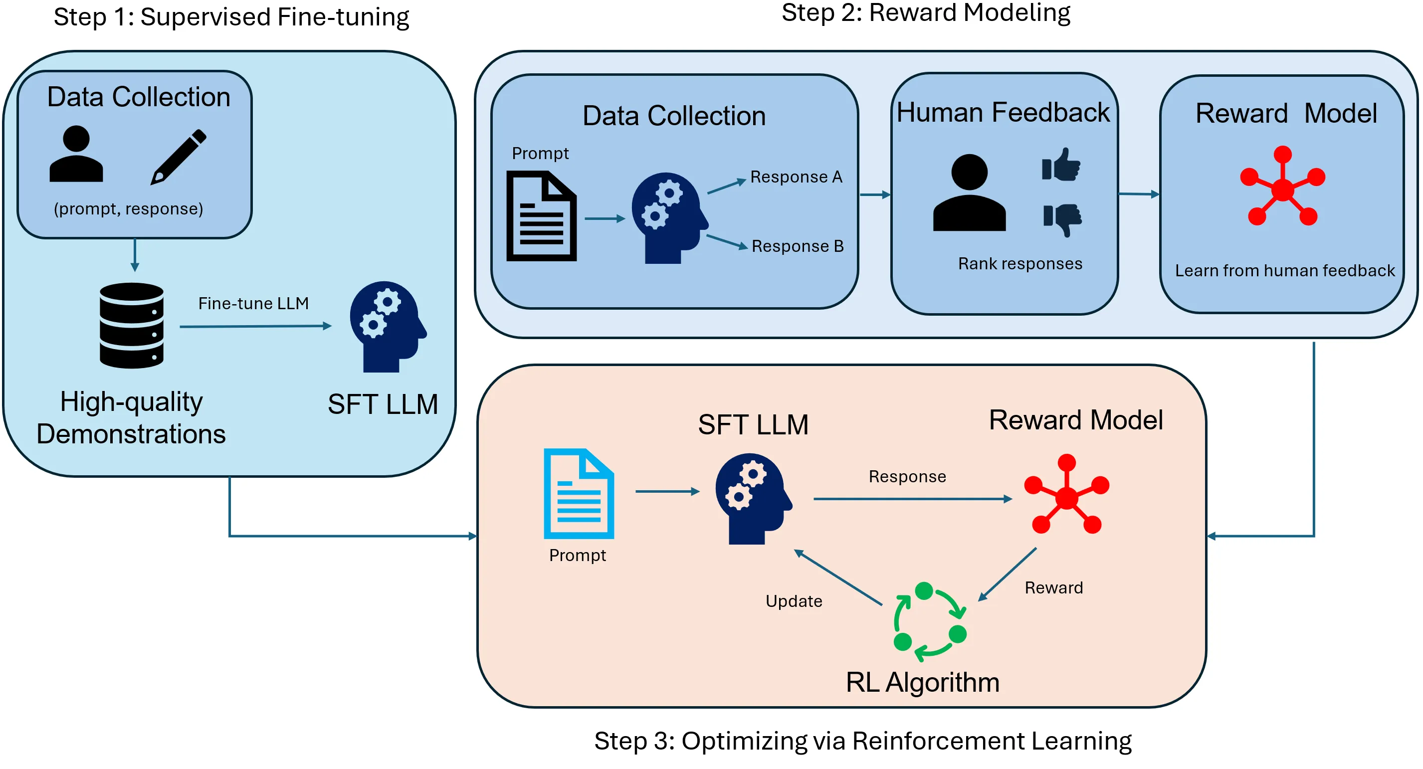 Reinforcement learning from human feedback (RLHF) has emerged as a central framework for aligning large language models (LLMs) with human preferences. Despite its practical success, RLHF raises fundamental statistical questions because it relies on noisy, subjective, and often heterogeneous feedback to learn reward models and optimize policies. This survey provides a statistical perspective on RLHF, focusing primarily on the LLM alignment setting. We introduce the main components of RLHF, including supervised fine-tuning, reward modeling, and policy optimization, and relate them to familiar statistical ideas such as Bradley-Terry-Luce (BTL) model, latent utility estimation, active learning, experimental design, and uncertainty quantification. We review methods for learning reward functions from pairwise preference data and for optimizing policies through both two-stage RLHF pipelines and emerging one-stage approaches such as direct preference optimization. We further discuss recent extensions including reinforcement learning from AI feedback, inference-time algorithms, and reinforcement learning from verifiable rewards, as well as benchmark datasets, evaluation protocols, and open-source frameworks that support RLHF research. We conclude by highlighting open challenges in RLHF. An accompanying GitHub demo https://github.com/Pangpang-Liu/RLHF_demo illustrates key components of the RLHF pipeline.