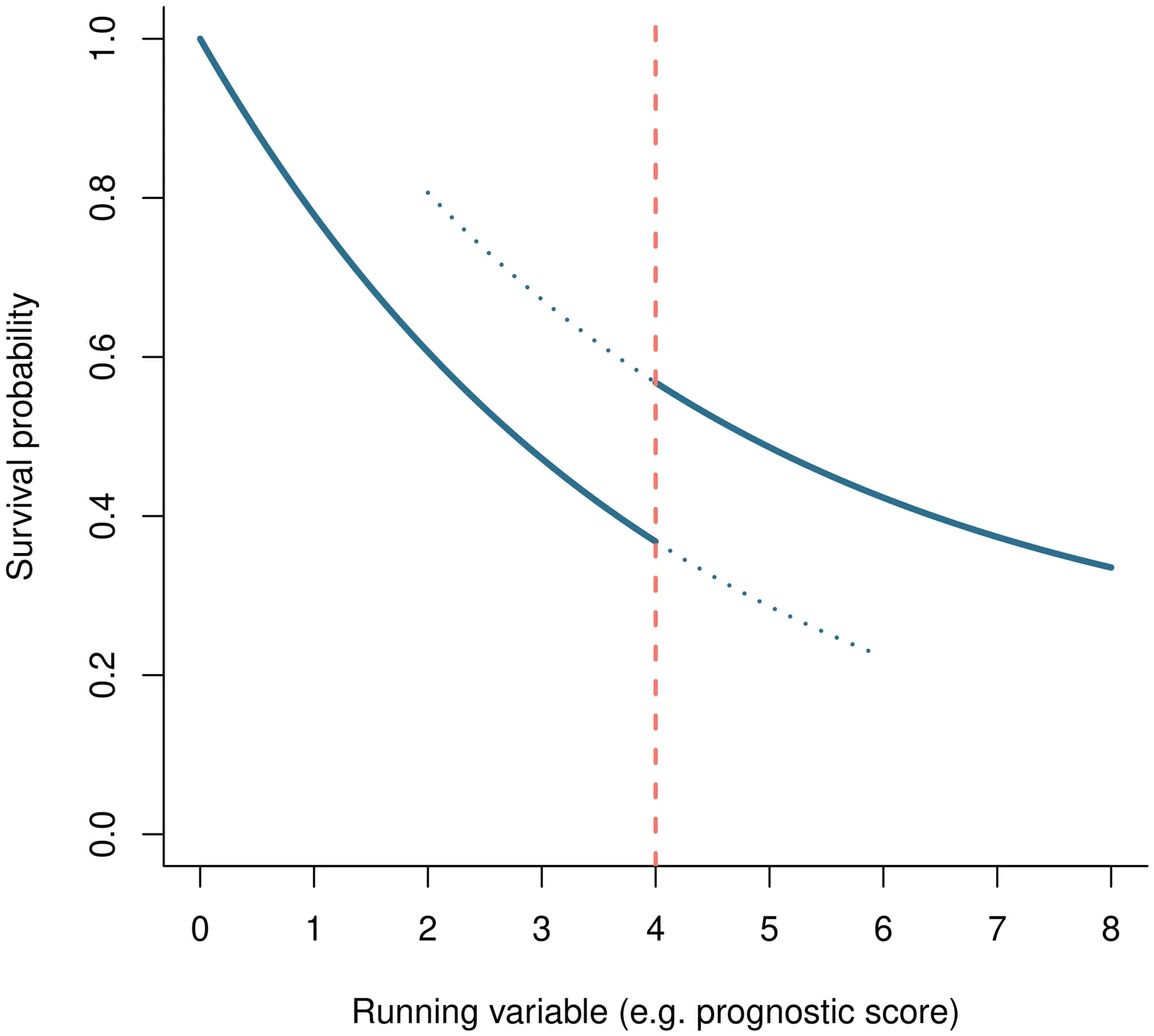 Quasi-experimental evaluations are central for generating real-world causal evidence and complementing insights from randomized trials. The regression discontinuity design (RDD) is a quasi-experimental design that can be used to estimate the causal effect of treatments that are assigned based on a running variable crossing a threshold. Such threshold-based rules are ubiquitous in healthcare, where predictive and prognostic biomarkers frequently guide treatment decisions. However, standard RD estimators rely on complete outcome data, an assumption often violated in time-to-event analyses where censoring arises from loss to follow-up. To address this issue, we propose a nonparametric approach that leverages doubly robust censoring corrections and can be paired with existing RD estimators. Our approach can handle multiple survival endpoints, long follow-up times, and covariate-dependent variation in survival and censoring. We discuss the relevance of our approach across multiple areas of applications and demonstrate its usefulness through simulations and the prostate component of the Prostate, Lung, Colorectal and Ovarian (PLCO) Cancer Screening Trial where our new approach offers several advantages, including higher efficiency and robustness to misspecification. We have also developed an open-source software package, $\texttt{rdsurvival}$, for the $\texttt{R}$ language.