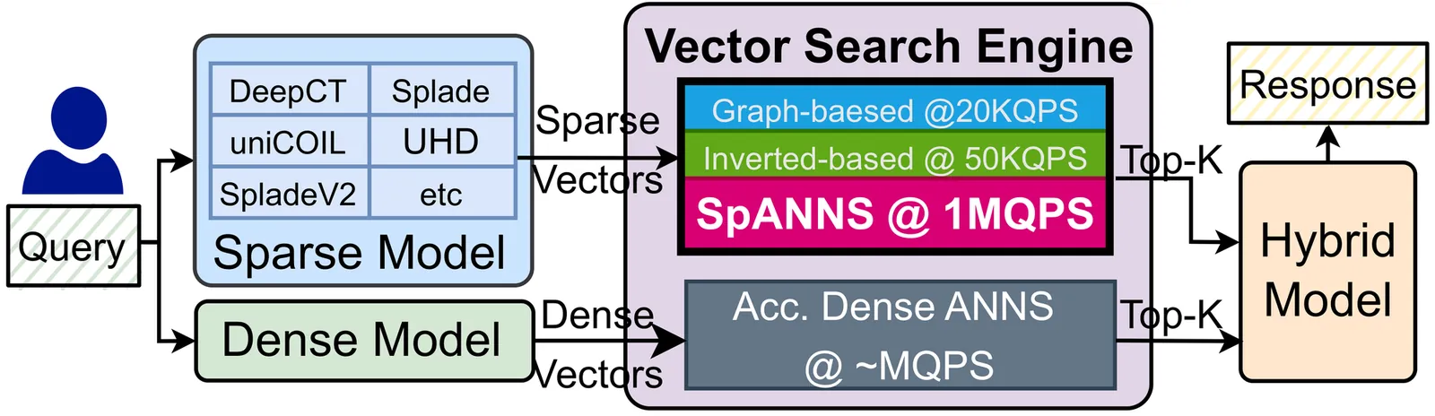 Approximate Nearest Neighbor Search (ANNS) is a fundamental operation in vector databases, enabling efficient similarity search in high-dimensional spaces. While dense ANNS has been optimized using specialized hardware accelerators, sparse ANNS remains limited by CPU-based implementations, hindering scalability. This limitation is increasingly critical as hybrid retrieval systems, combining sparse and dense embeddings, become standard in Information Retrieval (IR) pipelines. We propose SpANNS, a near-memory processing architecture for sparse ANNS. SpANNS combines a hybrid inverted index with efficient query management and runtime optimizations. The architecture is built on a CXL Type-2 near-memory platform, where a specialized controller manages query parsing and cluster filtering, while compute-enabled DIMMs perform index traversal and distance computations close to the data. It achieves 15.2x to 21.6x faster execution over the state-of-the-art CPU baselines, offering scalable and efficient solutions for sparse vector search.