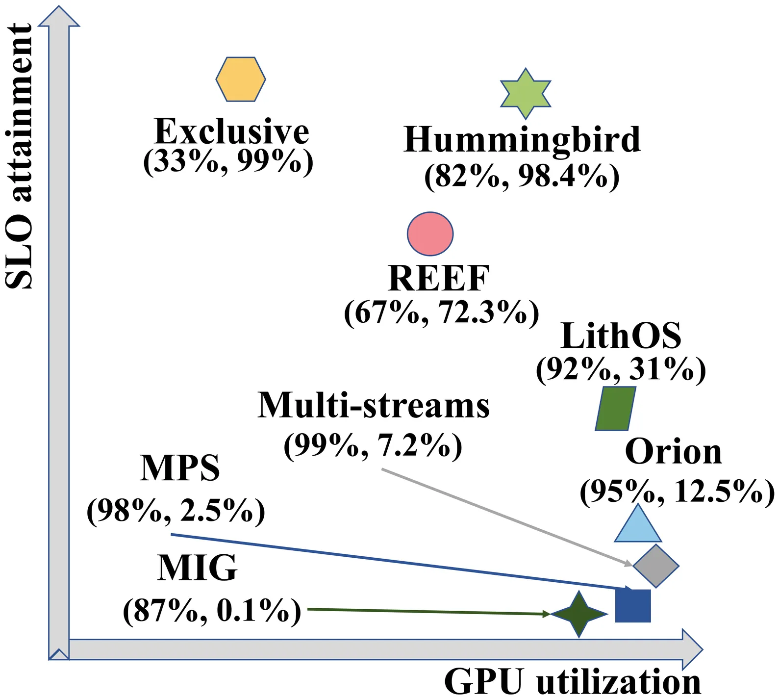 Existing GPU-sharing techniques, including spatial and temporal sharing, aim to improve utilization but face challenges in simultaneously ensuring SLO adherence and maximizing efficiency due to the lack of fine-grained task scheduling on closed-source GPUs. This paper presents Hummingbird, an SLO-oriented GPU scheduling system that overcomes these challenges by enabling microsecond-scale preemption on closed-source GPUs while effectively harvesting idle GPU time slices. Comprehensive evaluations across diverse GPU architectures reveal that Hummingbird improves the SLO attainment of high-priority tasks by 9.7x and 3.5x compared to the state-of-the-art spatial and temporal-sharing approaches. When compared to executing exclusively, the SLO attainment of the high-priority task, collocating with low-priority tasks on Hummingbird, only drops by less than 1%. Meanwhile, the throughput of the low-priority task outperforms the state-of-the-art temporal-sharing approaches by 2.4x. Hummingbird demonstrates significant effectiveness in ensuring the SLO while enhancing GPU utilization.